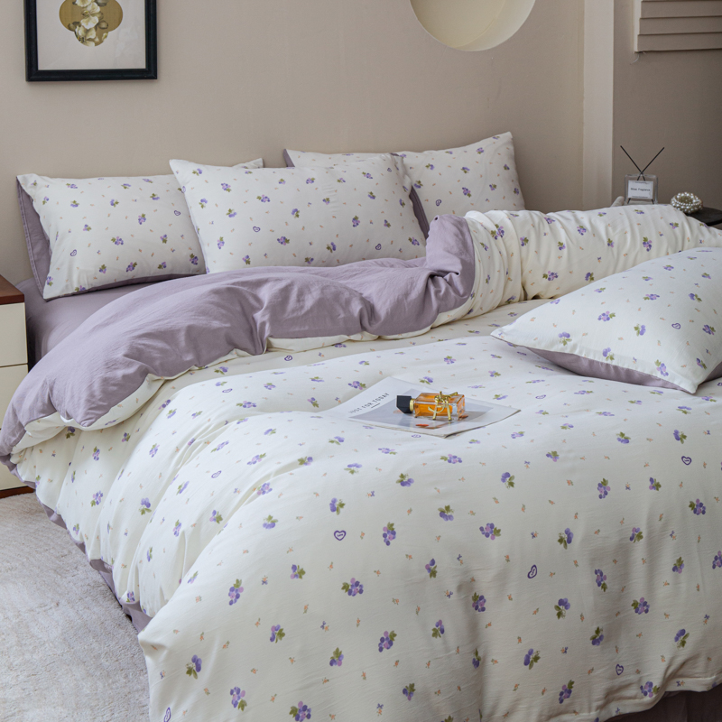(总)2026春夏新款拼色提花双层纱古法水洗床盖四件套提花云感棉,啵啵熊,春暖花开,春暖花开粉,蝶梦成真,花开富贵,浪漫主义蓝,浪漫主义紫,蘑菇力,南瓜派灰,南瓜派咖,雅韵,雅韵紫