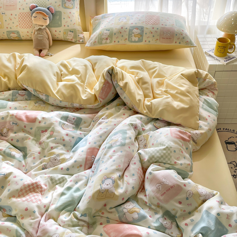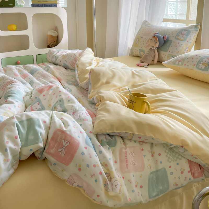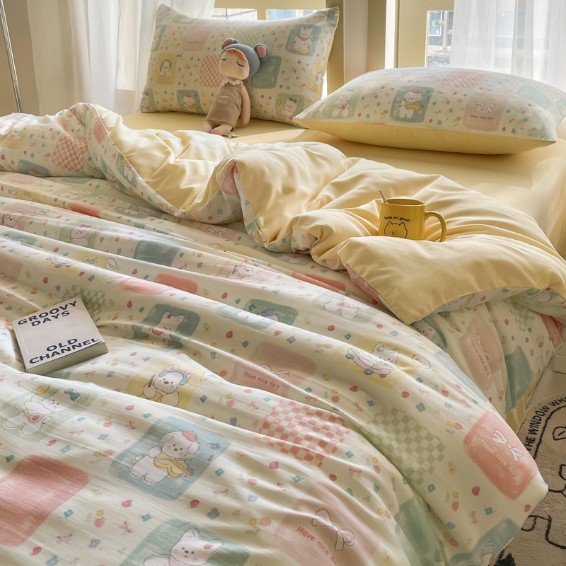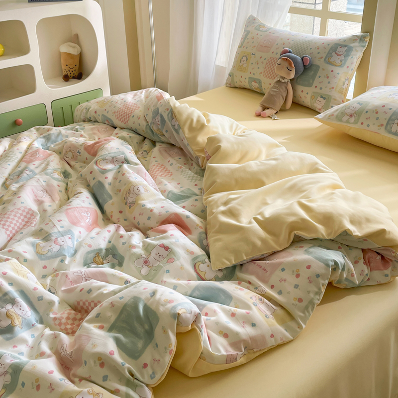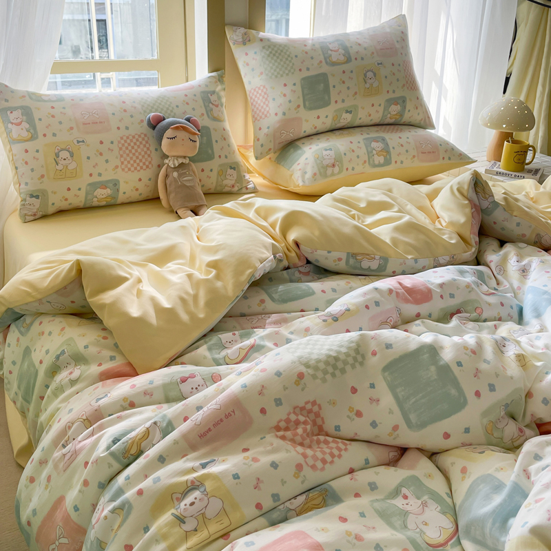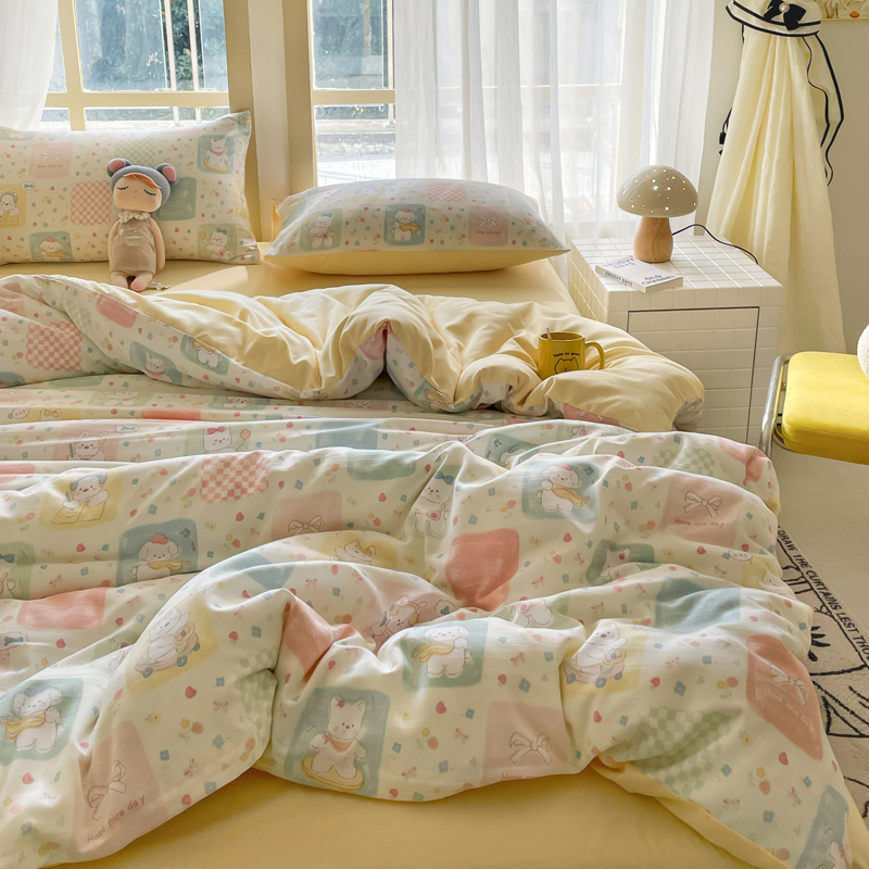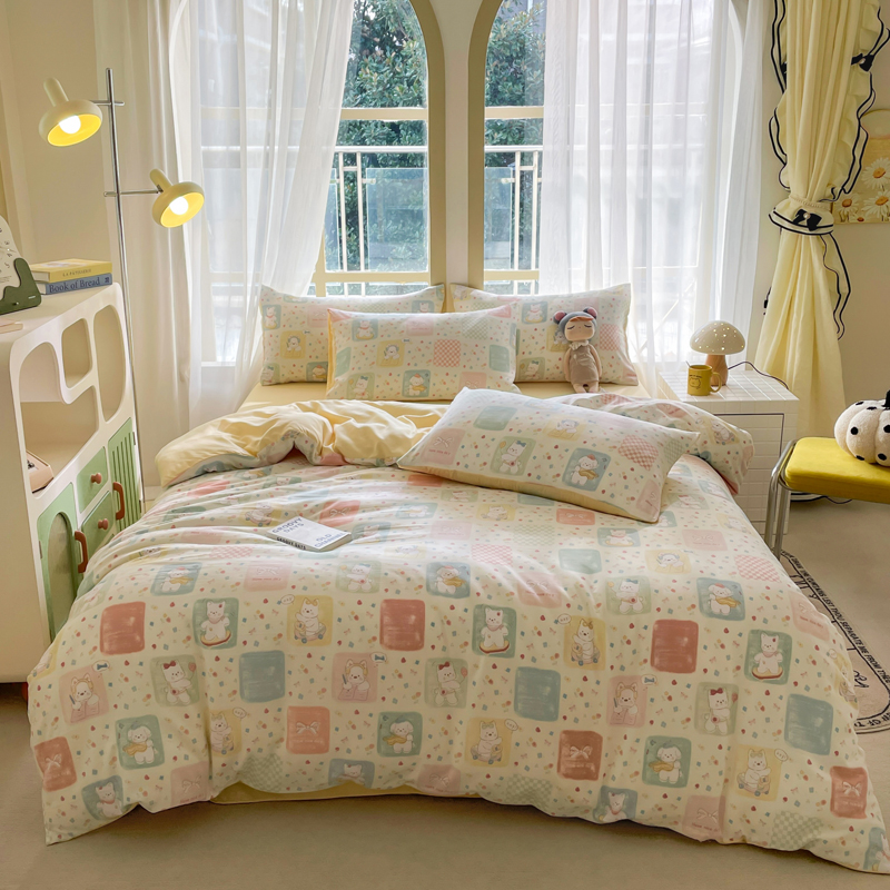 (总)仟网汇 2026新款亲肤舒适仿棉印花床盖四件套,豹纹喵咖,蛋糕派,灰小格,马戏团,萌萌兔,梦幻灰,梦幻紫,南瓜季,泡芙小象,皮皮狗,奇奇,圣诞夜,甜心喵,童趣,五彩斑斓,小木马,小时光,小熊头,鱼多多,逐梦,组合图仅供参考不可下单