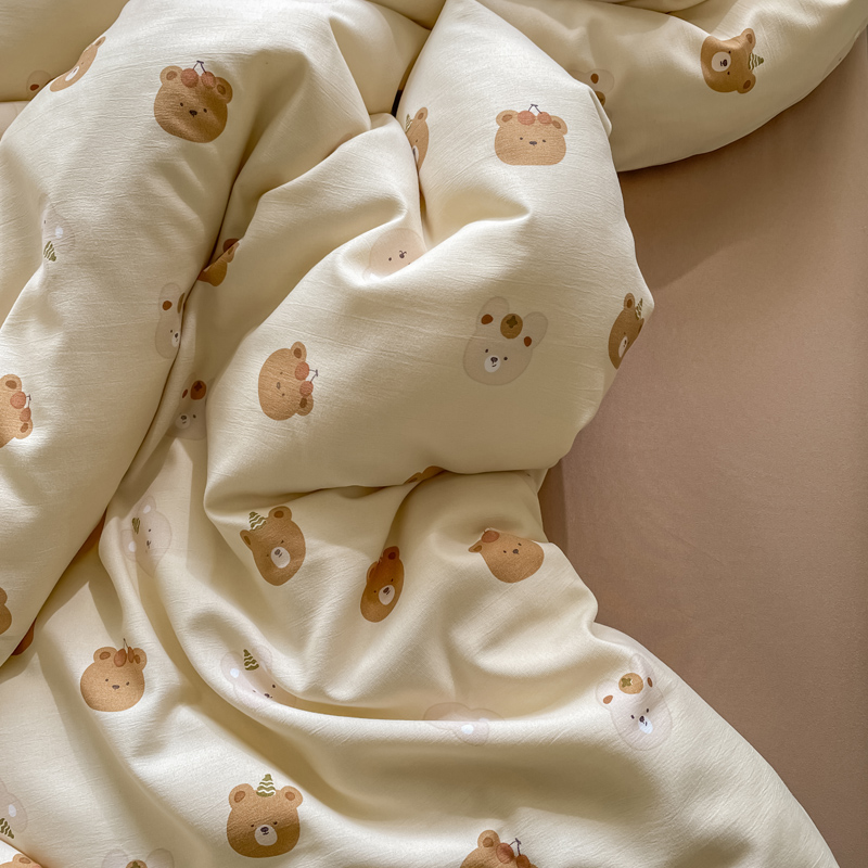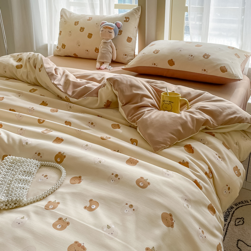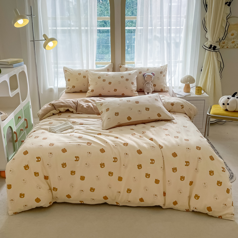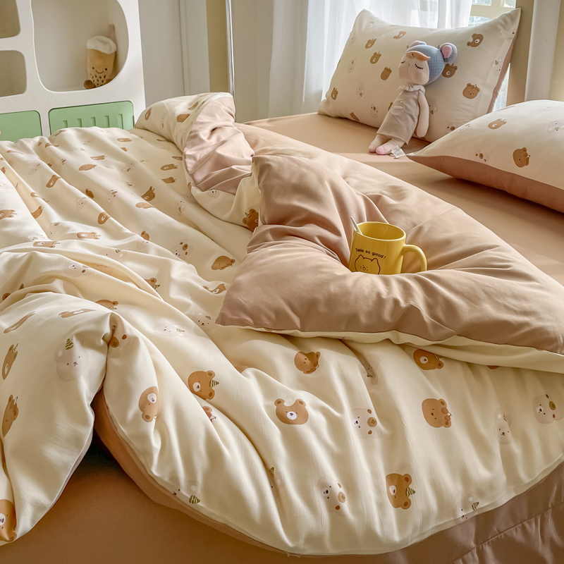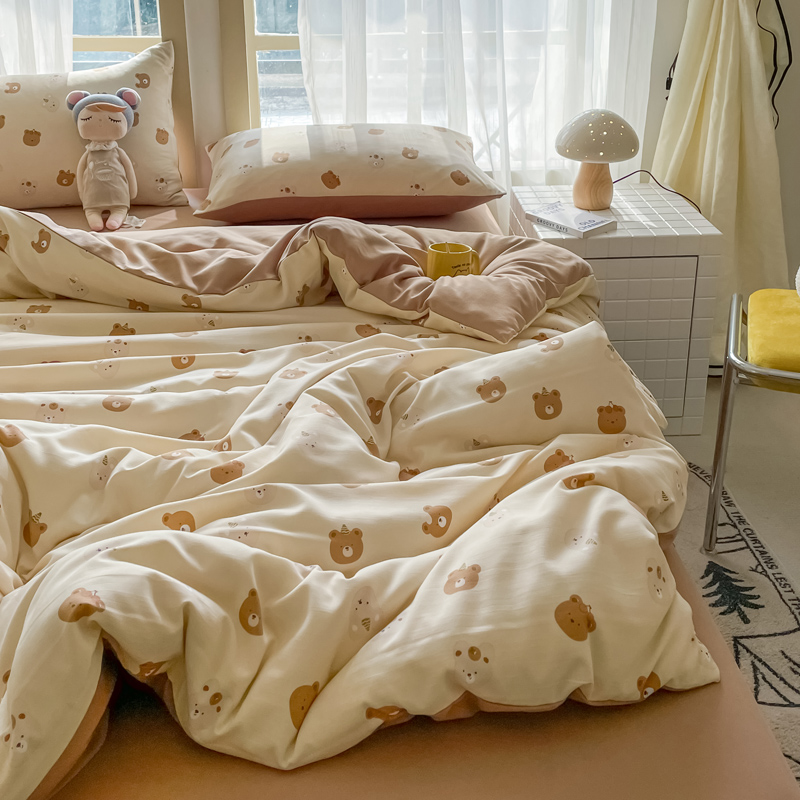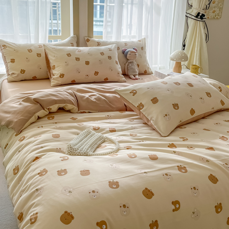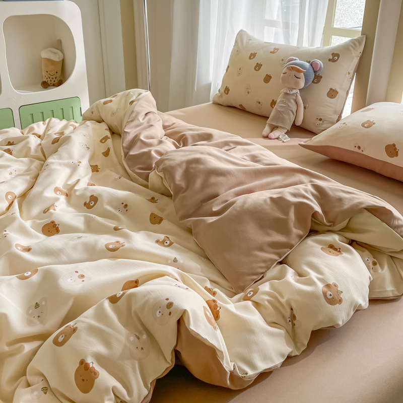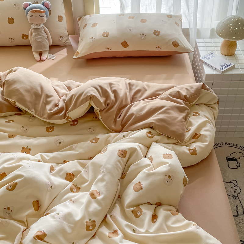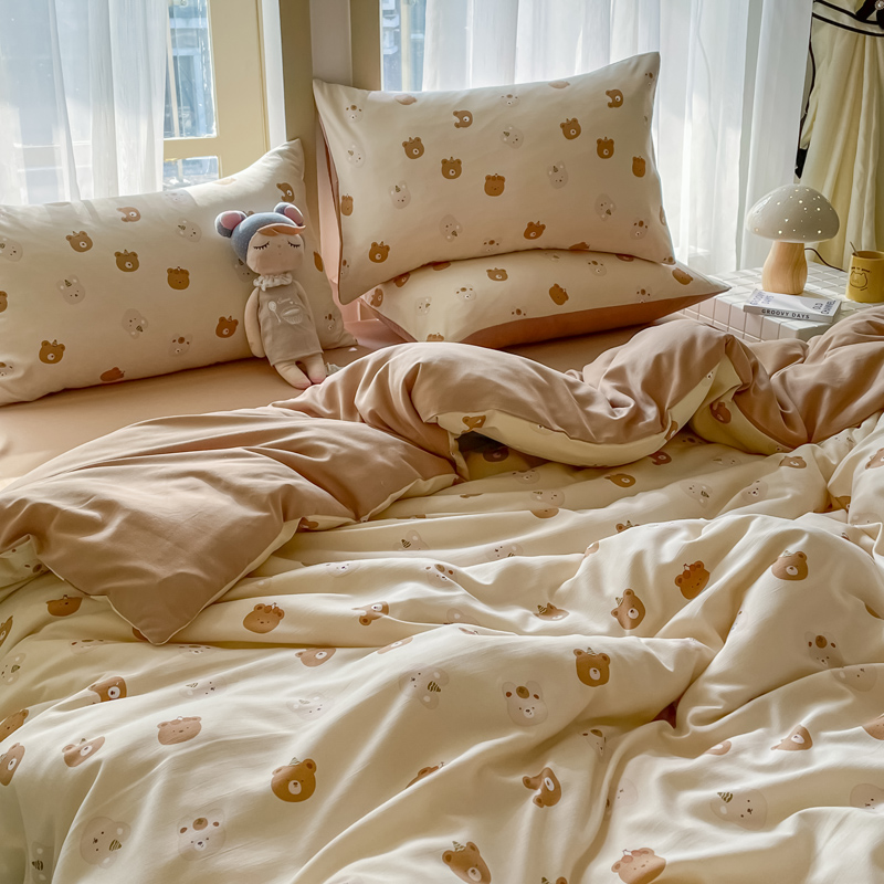 仟网汇 2025新款针织双层纱AB版四件套 小呆熊