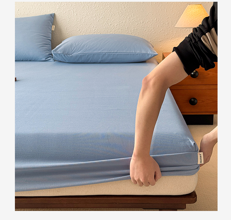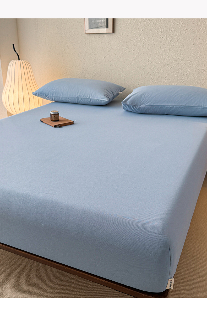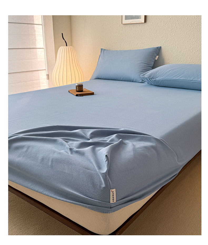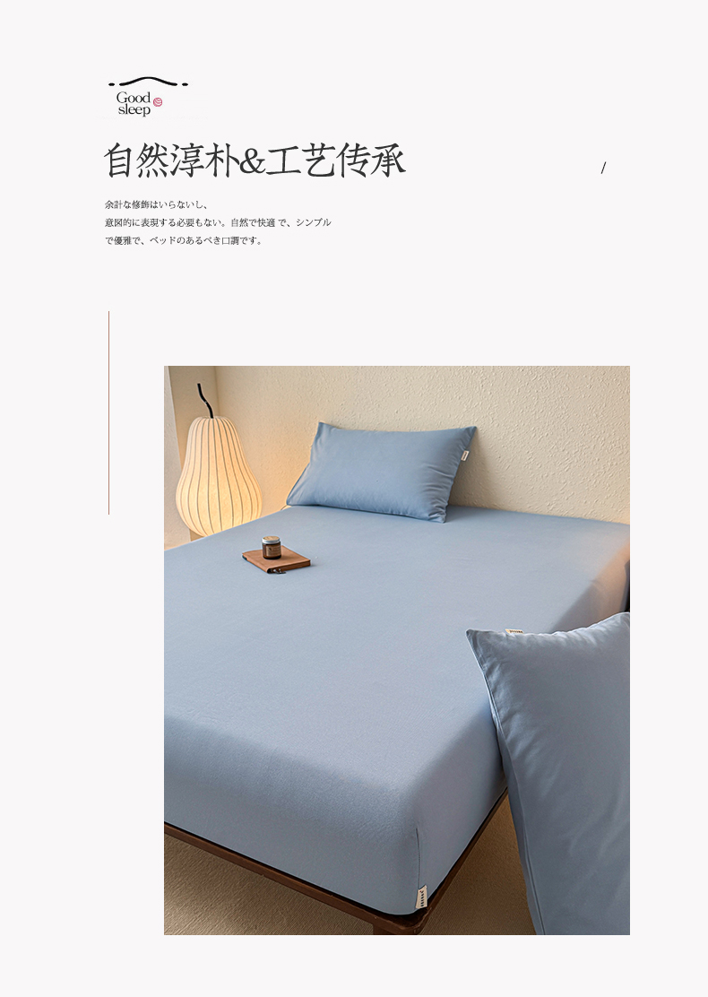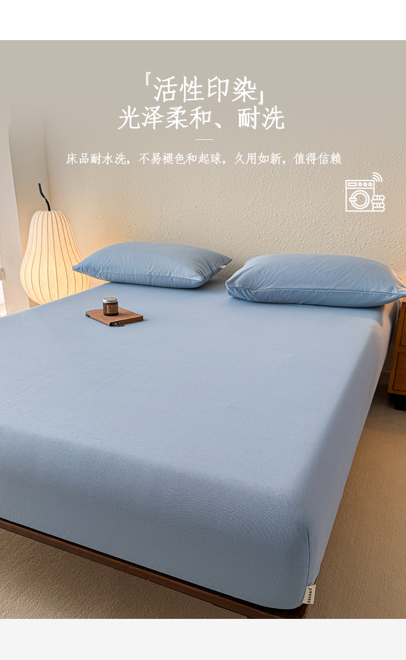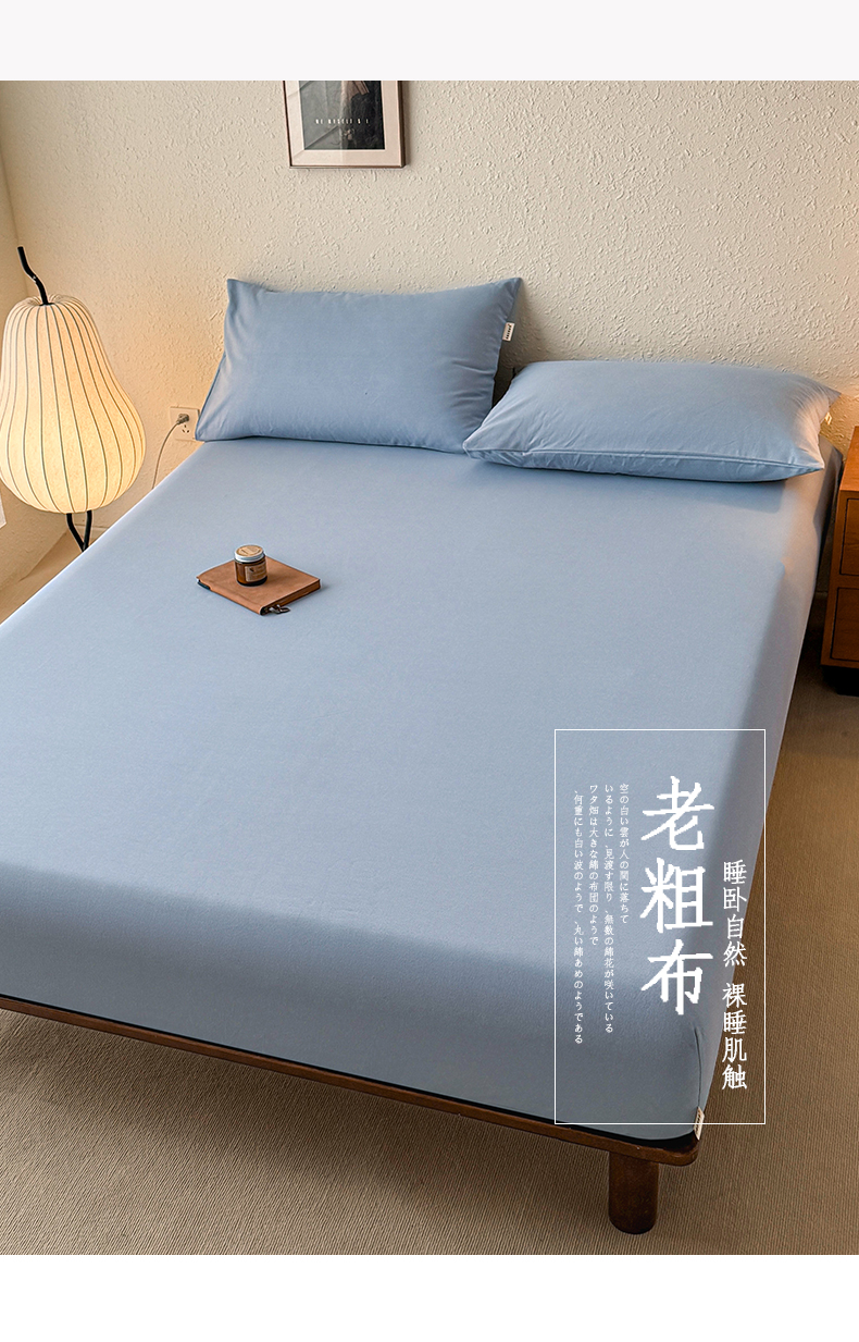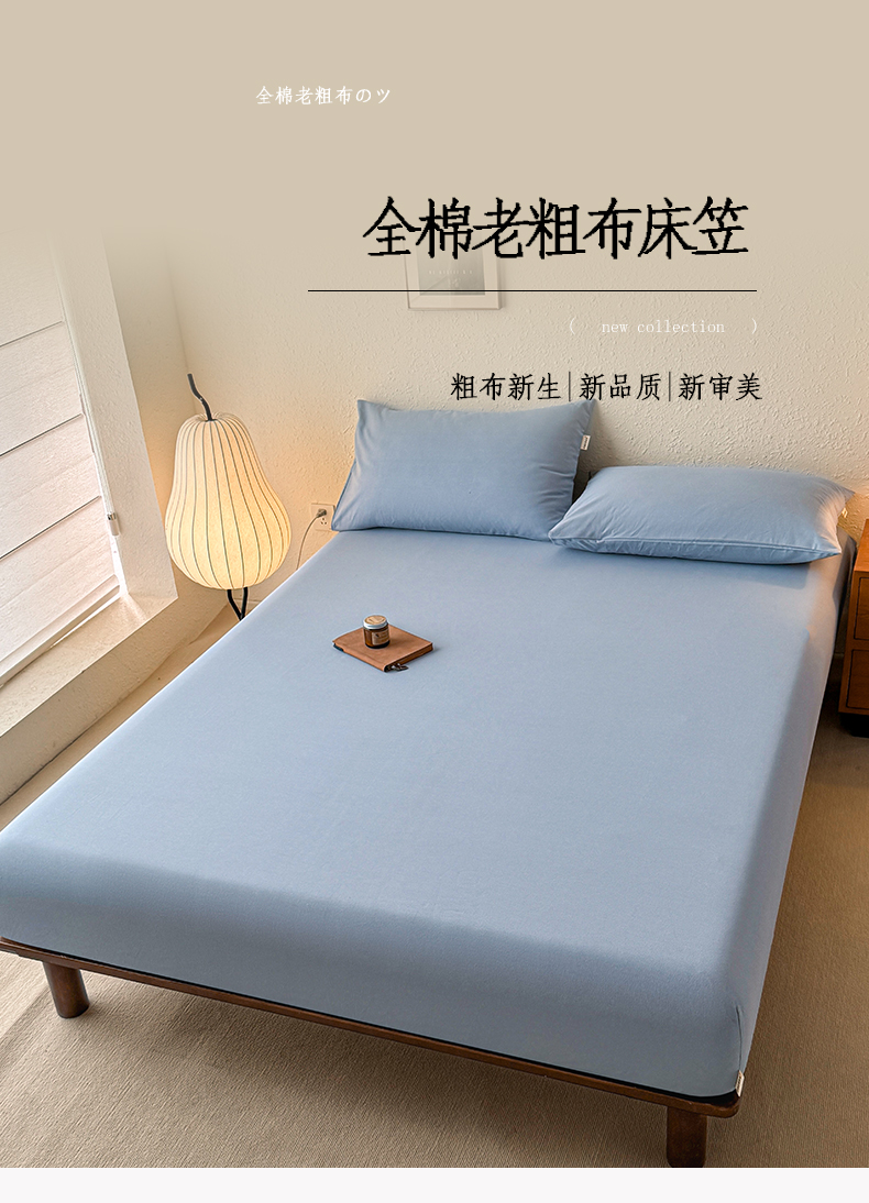 卧趣家纺 2025新品全棉纯色老粗布单品床笠系列 烟蓝