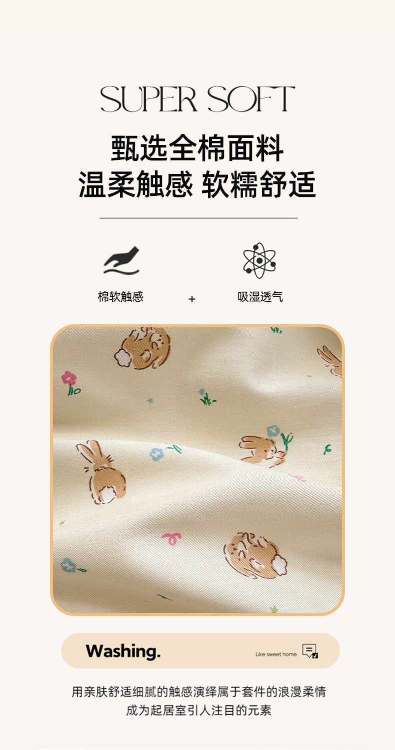 商品名称:清雅福 2025全棉13372小清新四件套和单品早春系列第一批 - 单被套 兔精灵