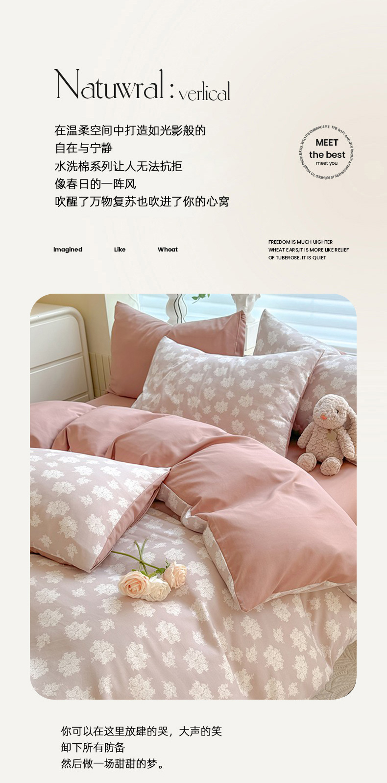 (总)秋艳家纺 2025新款水洗针织棉四件套,川野来信,春日序,椿与,芳华,花夕雾,清风小记,时宜,松山乐,桃喜,小苍兰,小满,寻梦