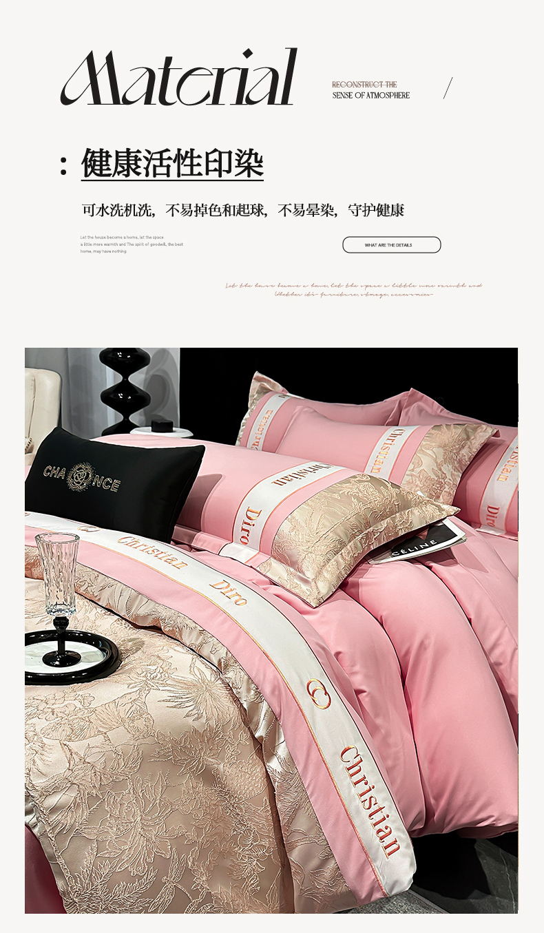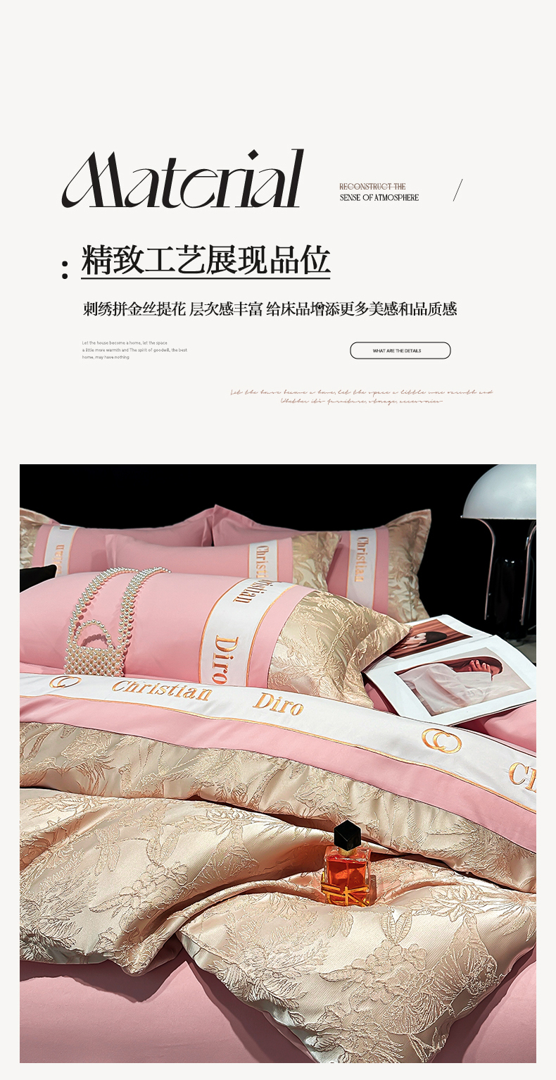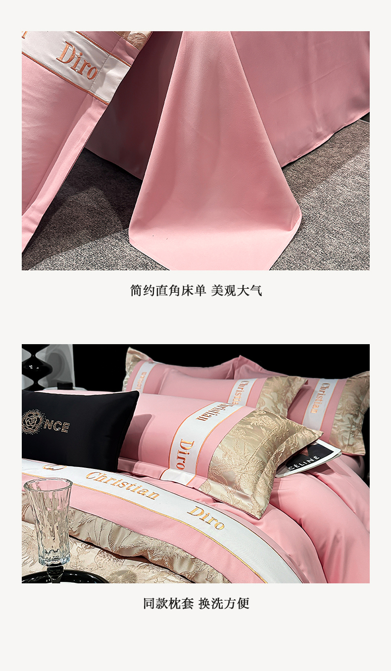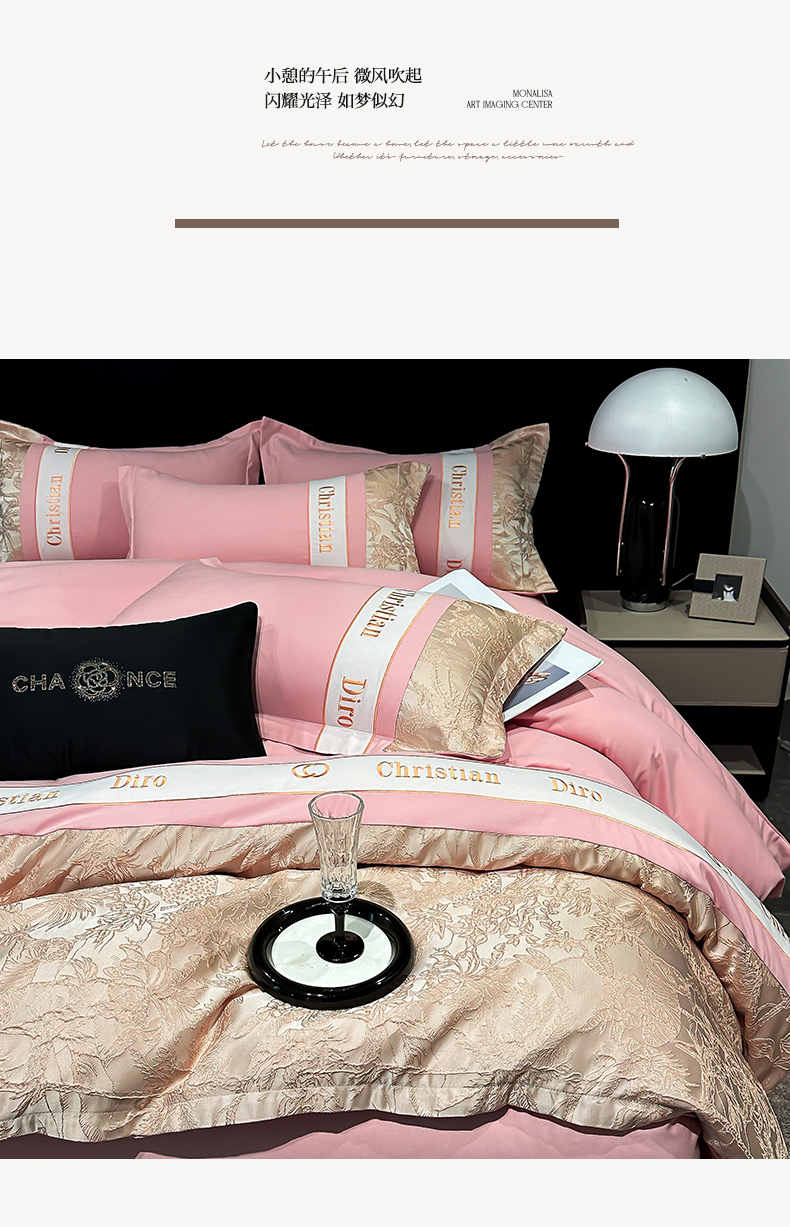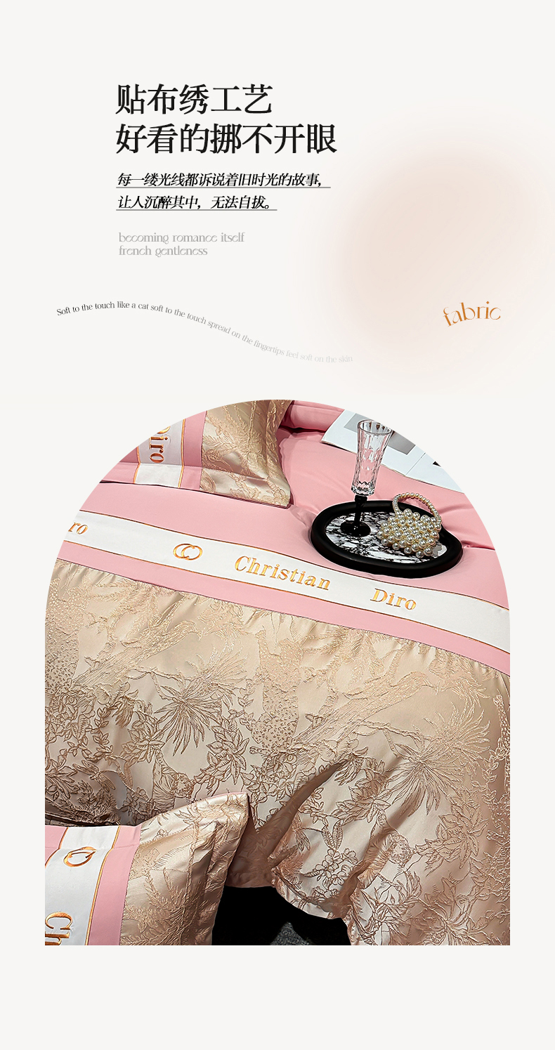 富宁家纺 2025新款刺绣拼金丝提花磨毛四件套-森林奇境 森林奇境-粉玉