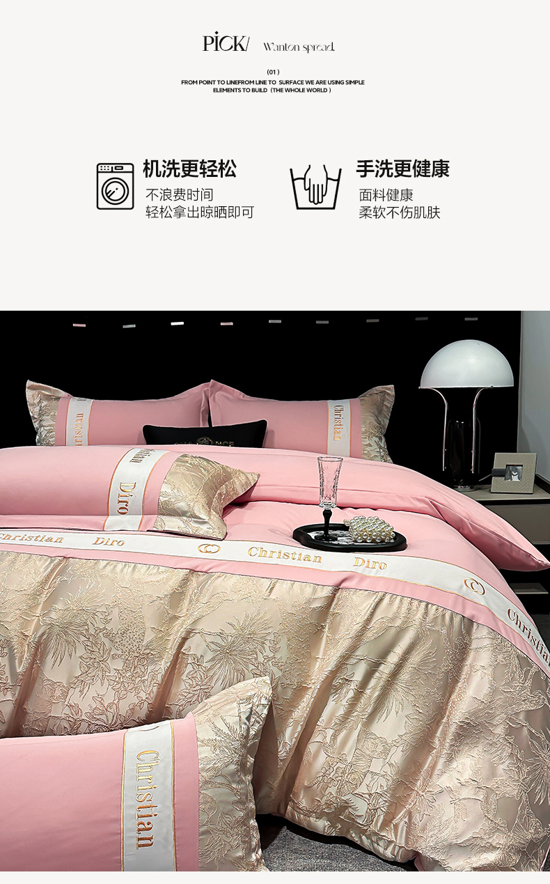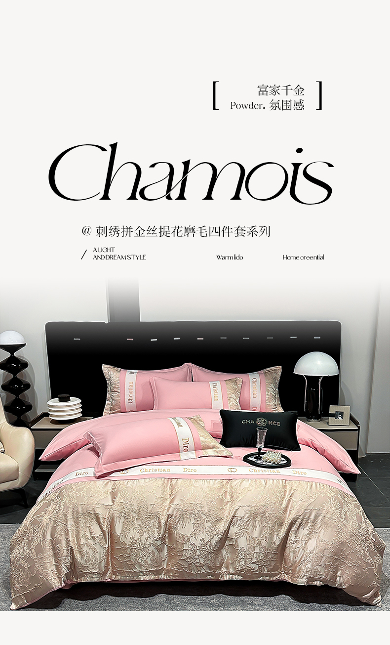 (总)富宁家纺 2025新款立体雕花牛奶绒绣花四件套-洛卡玫瑰系列,洛卡白,玫瑰灰,洛卡咖,玫瑰粉,洛卡蓝