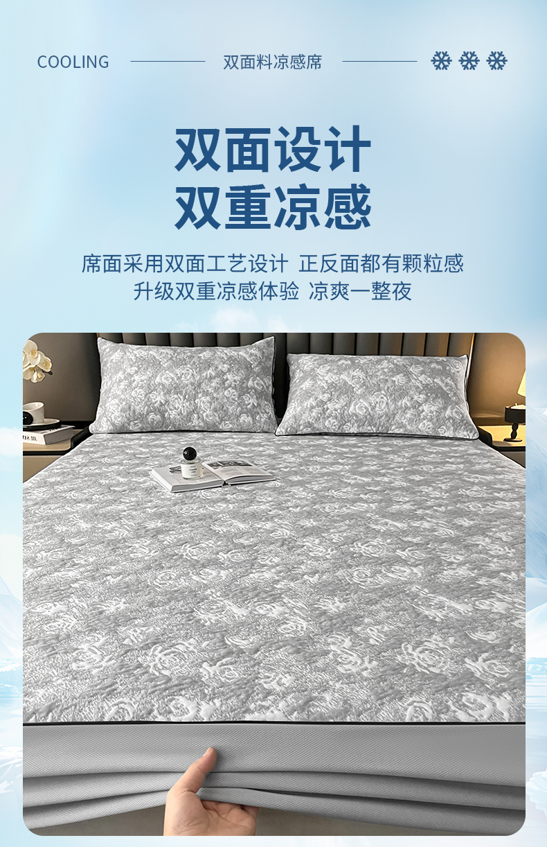商品名称:阿牛席业2025新款凉感软席系列-F-凉感双面软席床笠 绽放-玫瑰灰