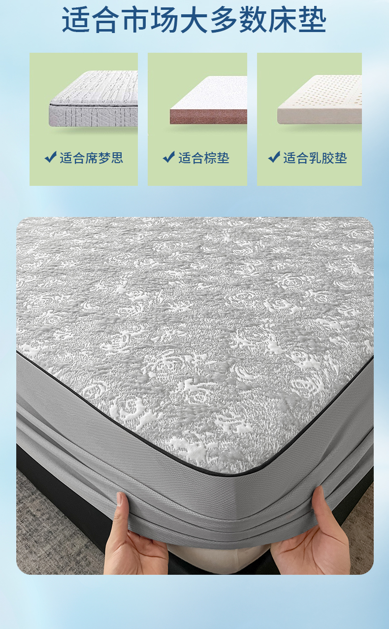 (总)阿牛席业2025新款夹棉床笠席梦思保护罩,白色,灰色