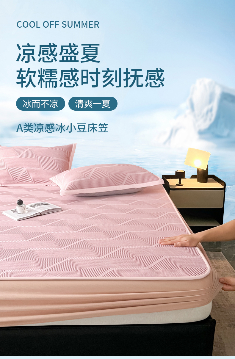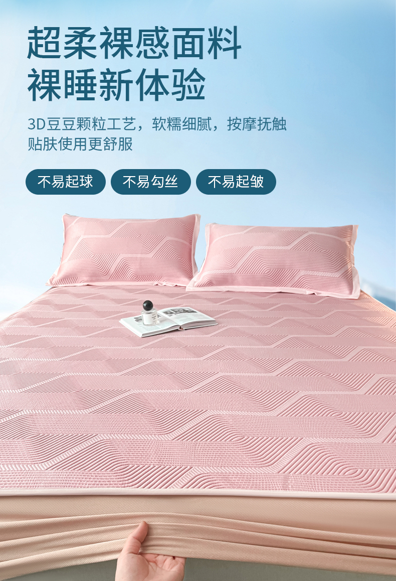 商品名称:阿牛席业2025新款凉感软席系列-D-凉感豆豆提花床笠 爱巢-粉