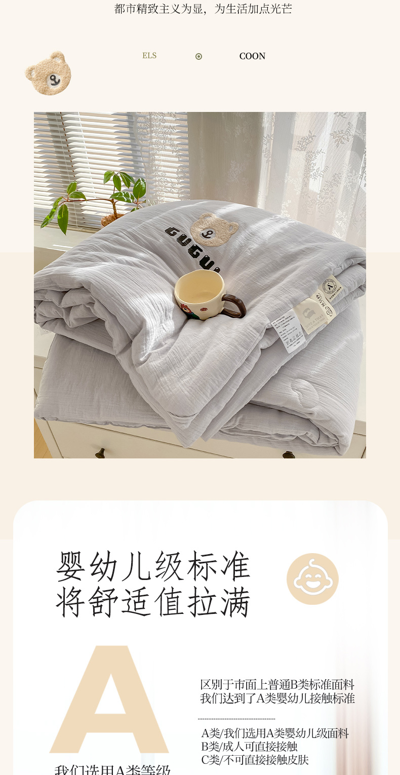 • 91家纺网 家纺一手货源 找家纺 风蝴蝶 2025新款水洗全棉双层纱夏被空调被大豆被夏凉被纯色春秋被子被芯 小熊-浅灰色