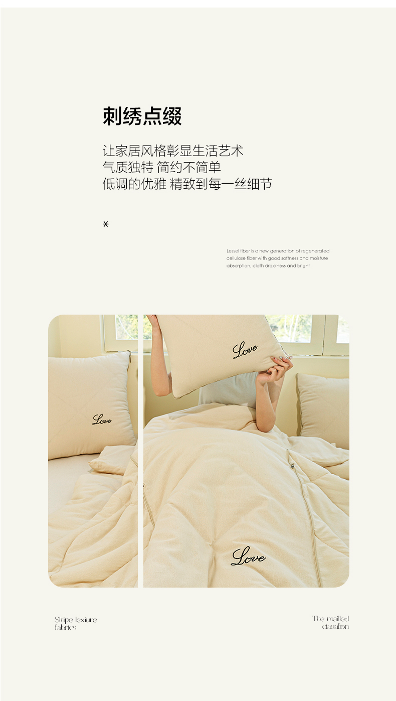 番茄+ 2025新款全棉麻感纯色抱枕被 卡其