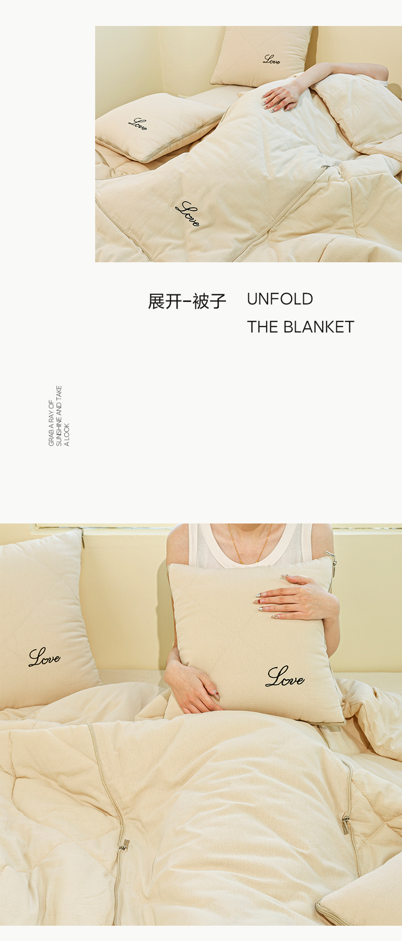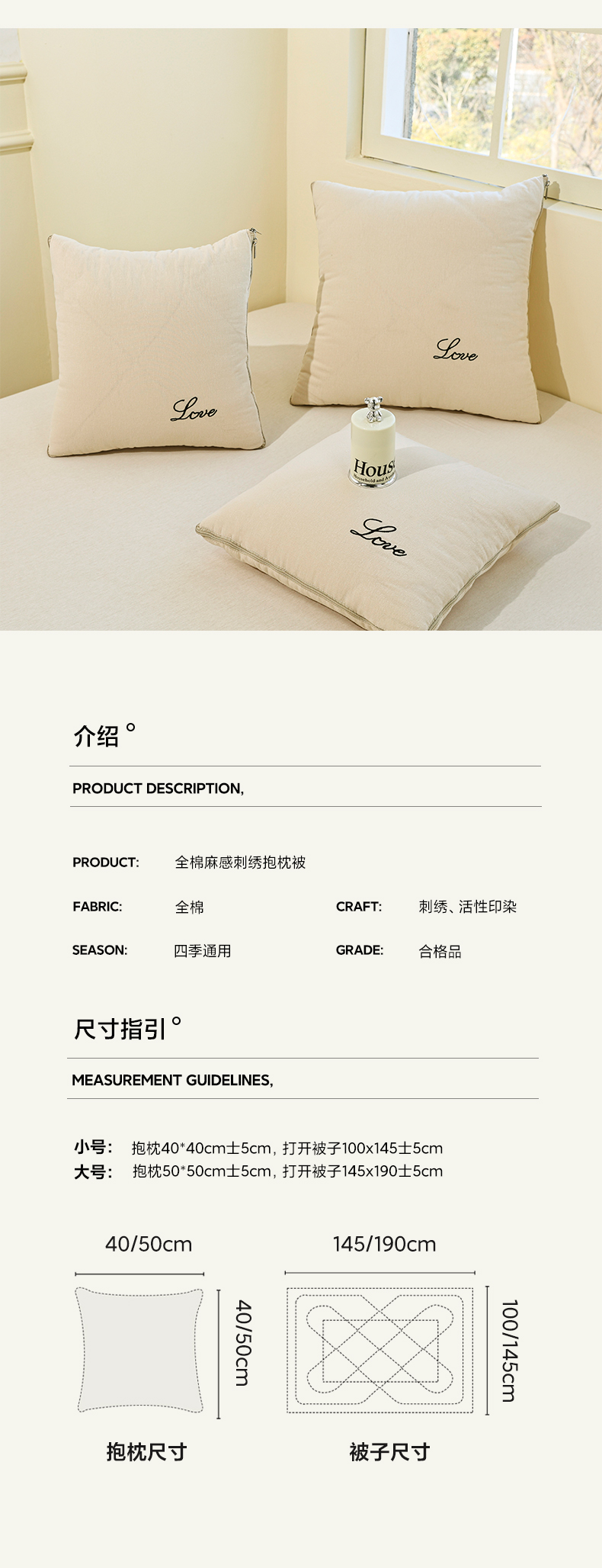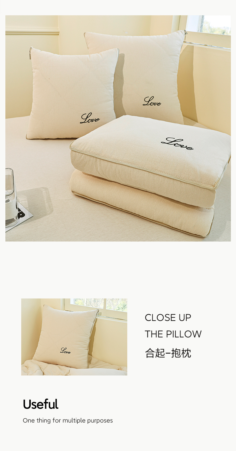 商品名称:番茄+ 2025新款全棉麻感纯色抱枕被 卡其