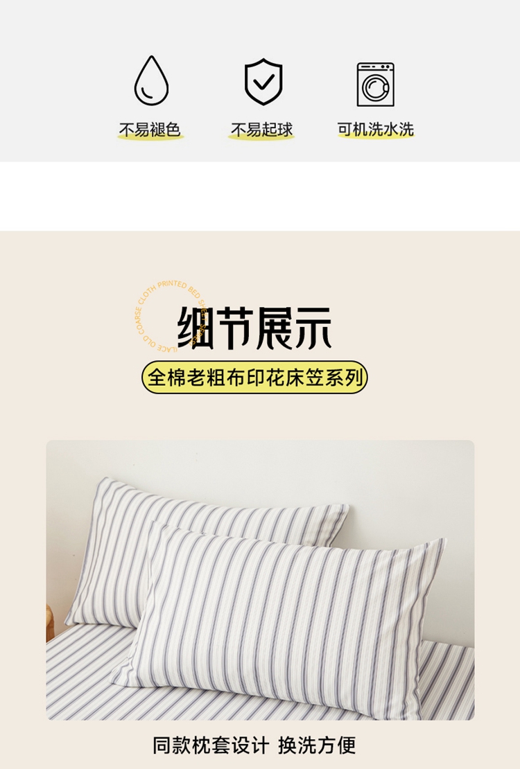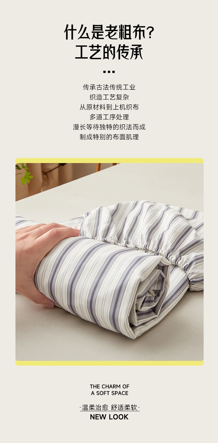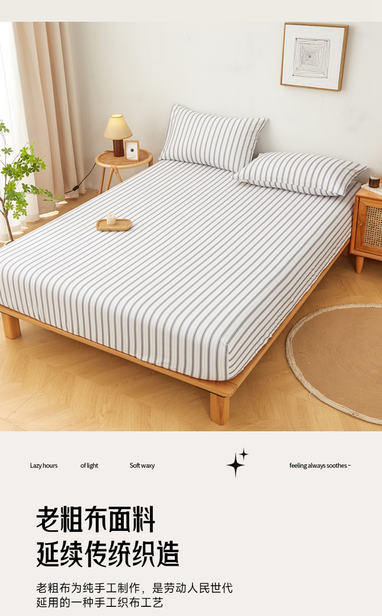 商品名称:慕梵家居 2025新款全棉老粗布床笠系列 全棉老粗布-彩条灰