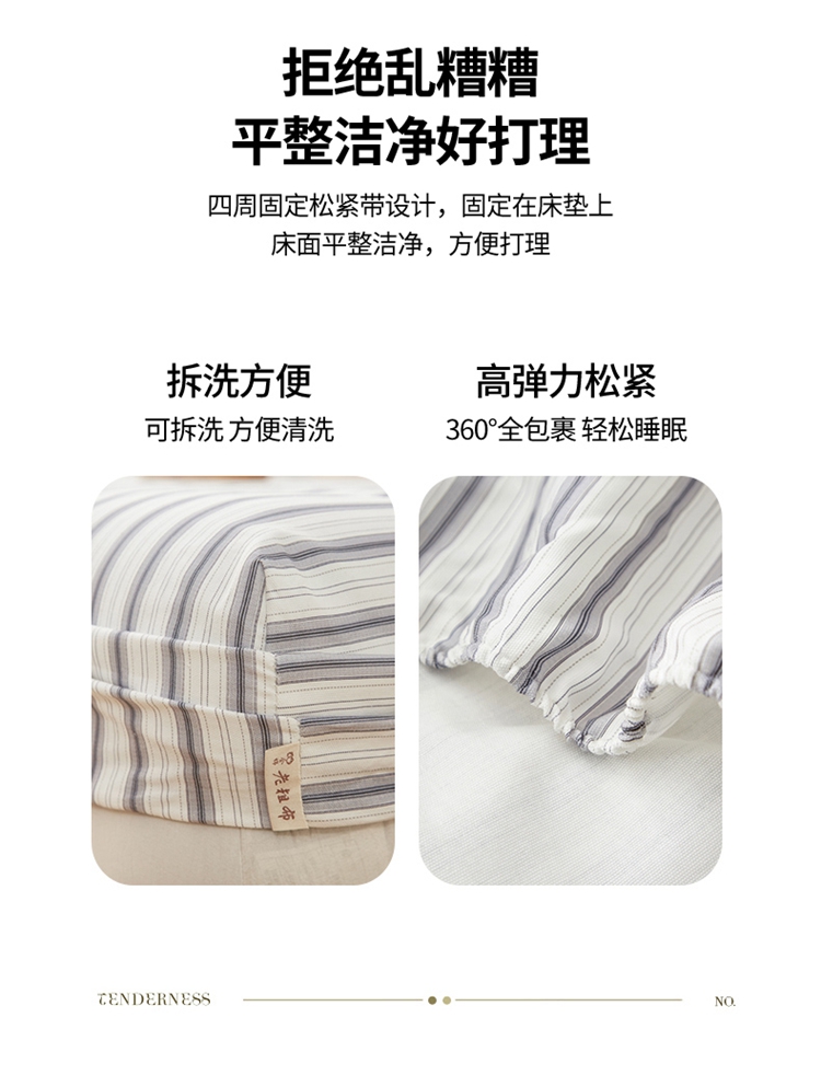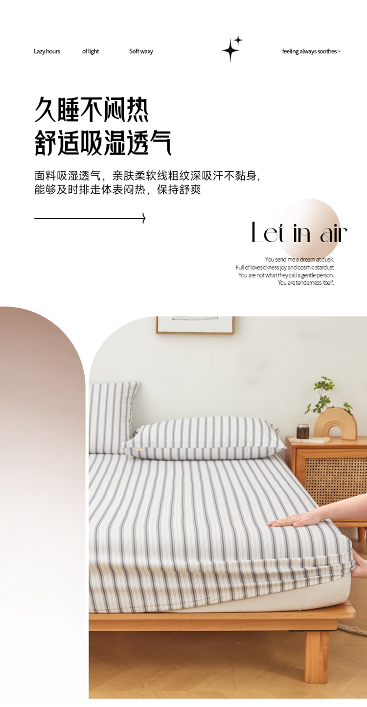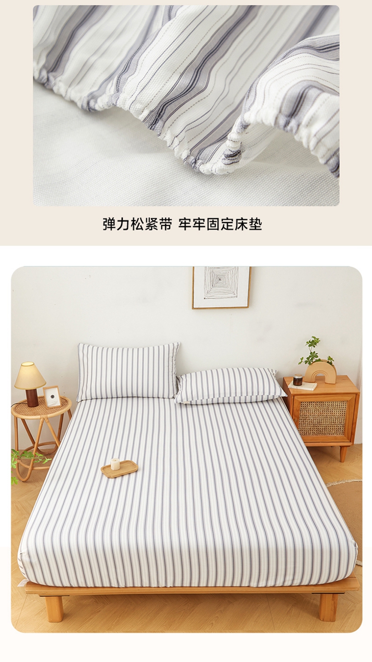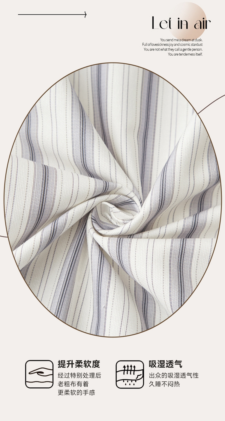 商品名称:慕梵家居 2025新款全棉老粗布床笠系列 全棉老粗布-彩条灰