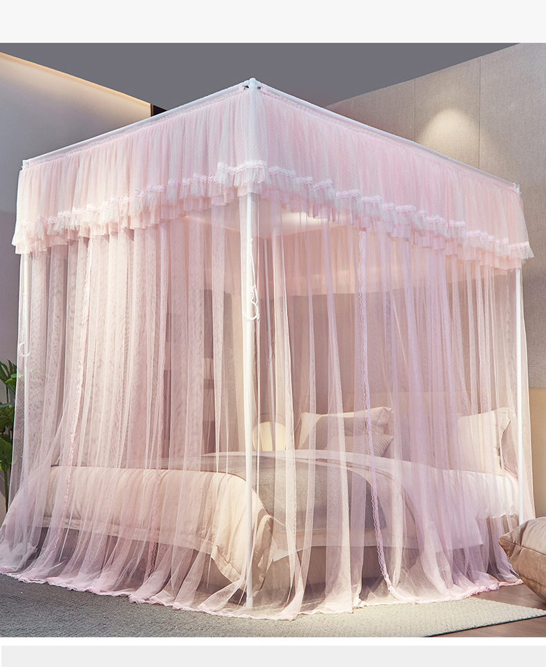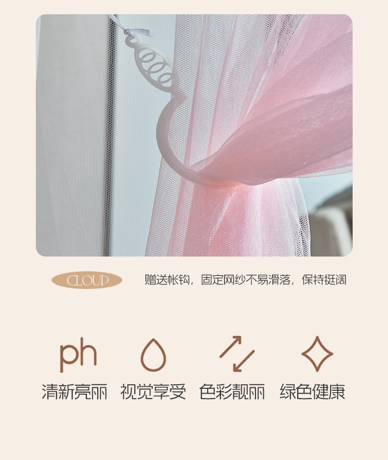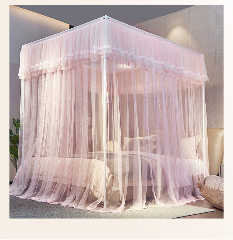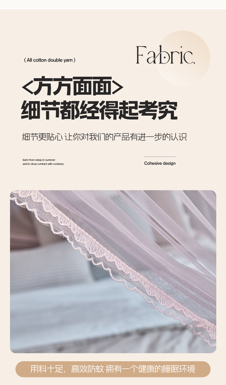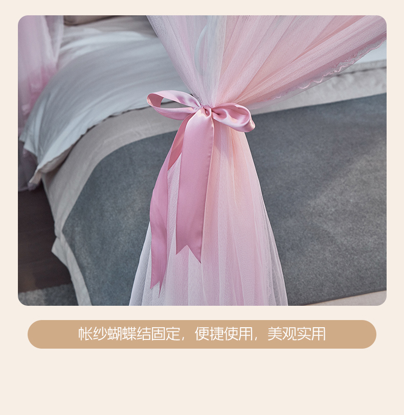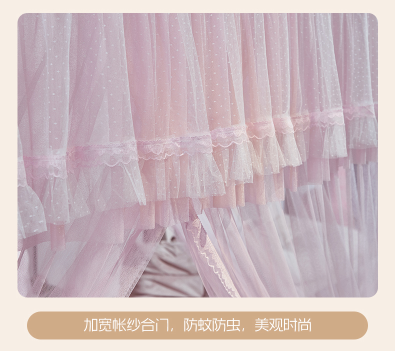 商品名称:夏彩 2025新款蕾丝加柔加密外撑式25烤漆铁艺加粗支架宫廷蚊帐-88613 88613虾粉