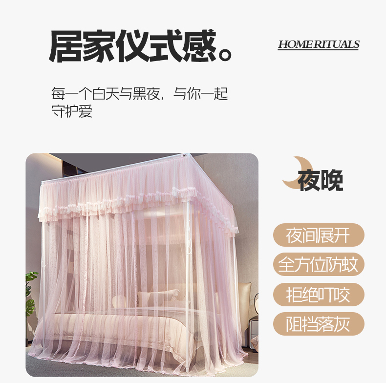 (总)夏彩 2025新款浪漫唯美T+U床笠式坐床外穿防摔蚊帐-88610,886610冰海蓝,886610极光白,886610浅粉玉,886610浅水蓝,886610蔷薇粉,886610杏仁黄,886610雅士灰