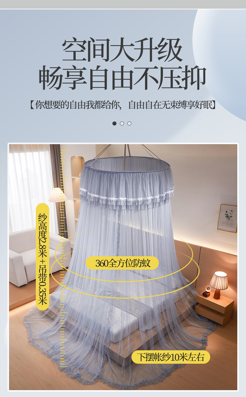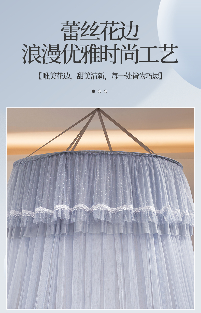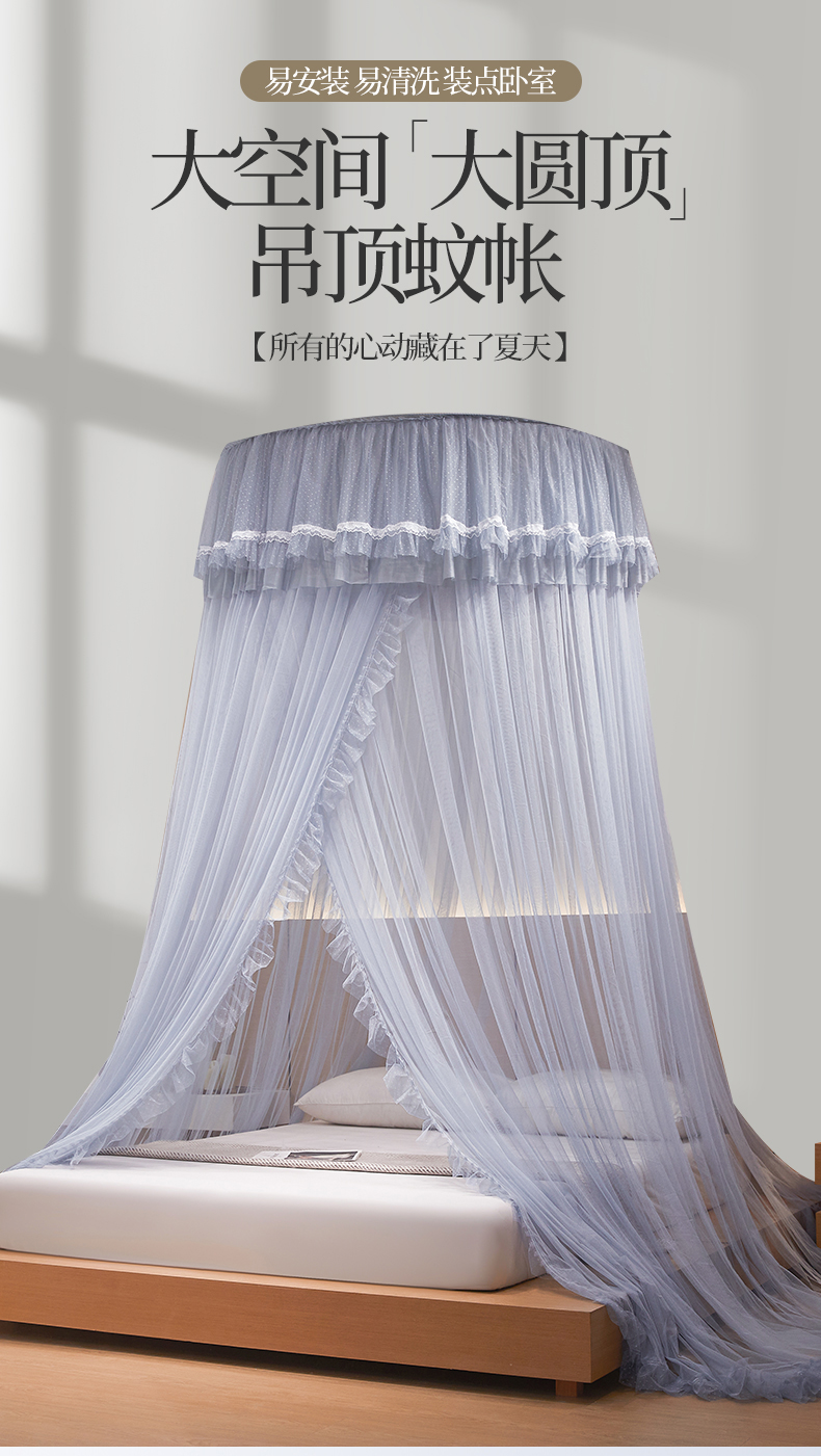 商品名称:夏彩 2025新款直径加高加密加柔吊顶蚊帐-88621 88621-浅蓝灰