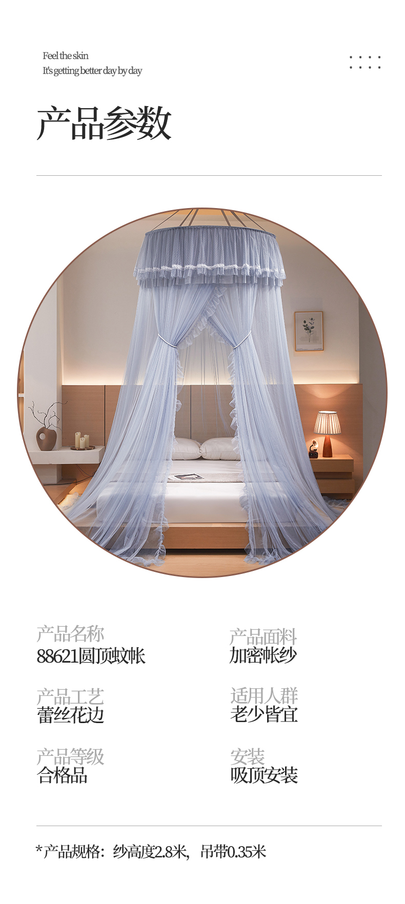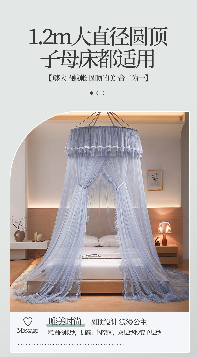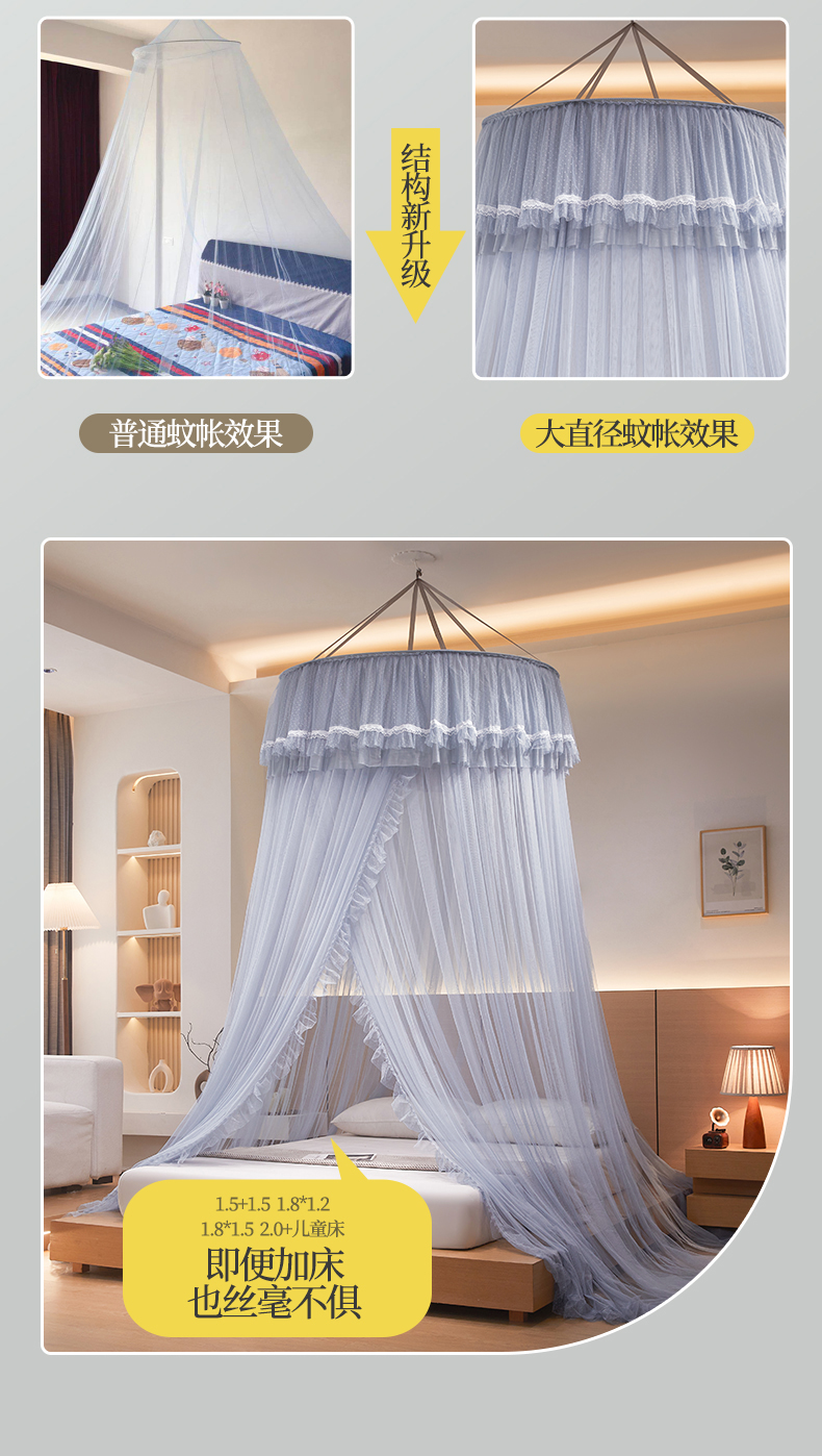 商品名称:夏彩 2025新款直径加高加密加柔吊顶蚊帐-88621 88621-浅蓝灰