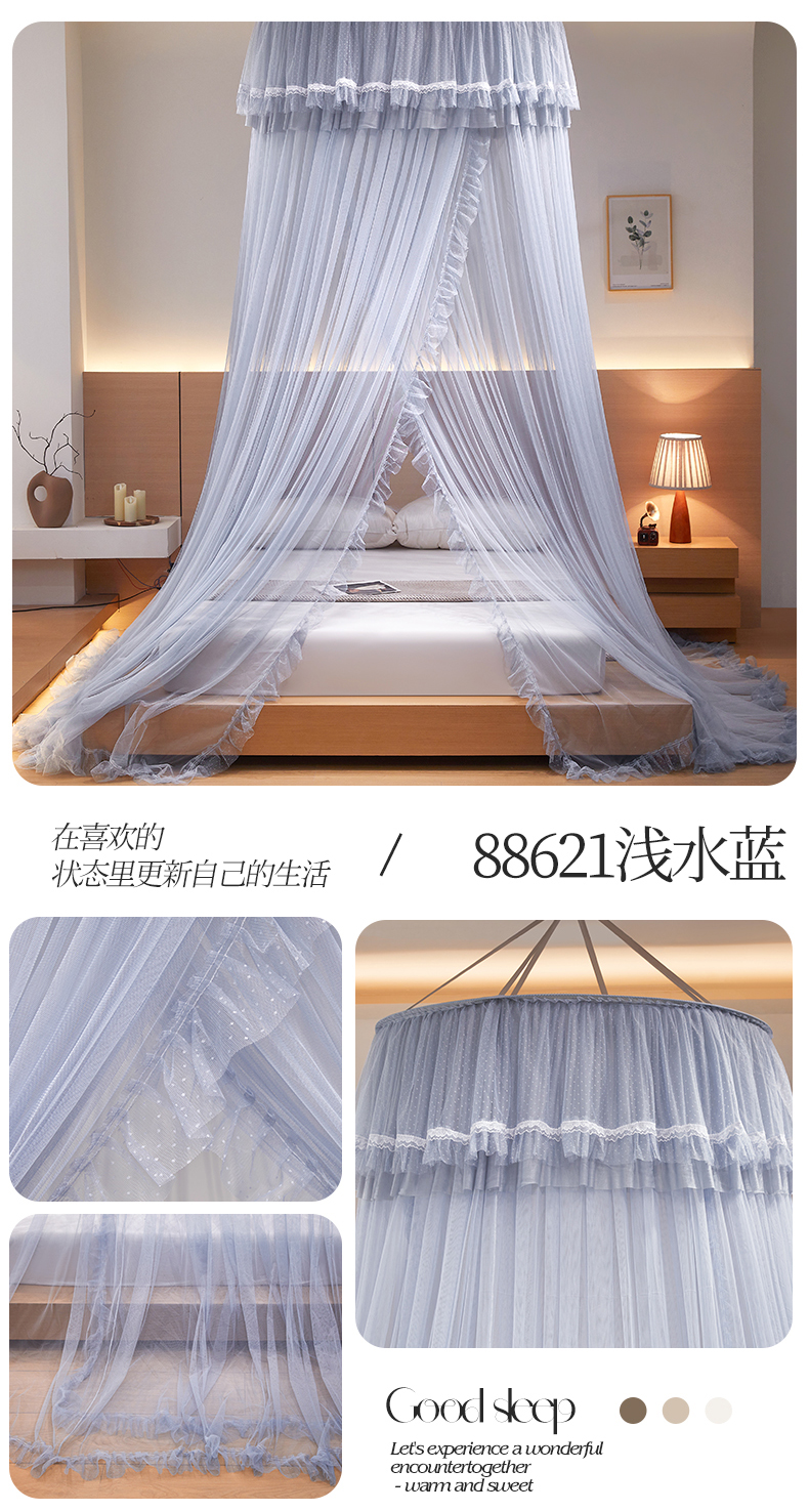(总)夏彩 2025新款豪华宫廷蕾丝睡帐-88599,88599-公主白,88599-公主粉,88599-公主玉,88599-蓝灰色