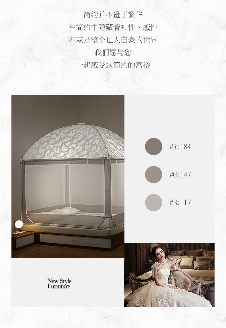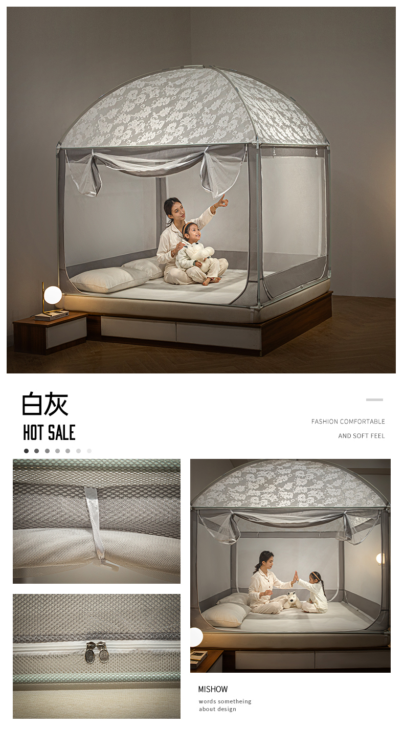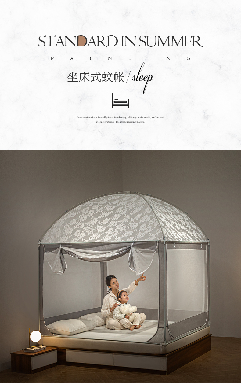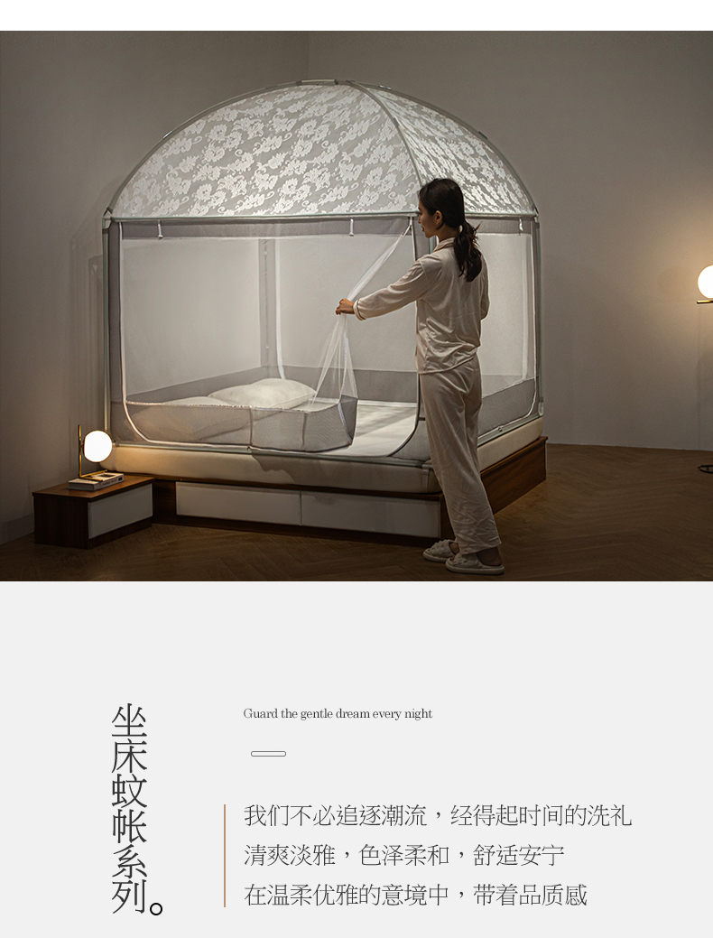 商品名称:飞轮海2025春夏新款坐床式全包蚊帐-MZ-01 白灰