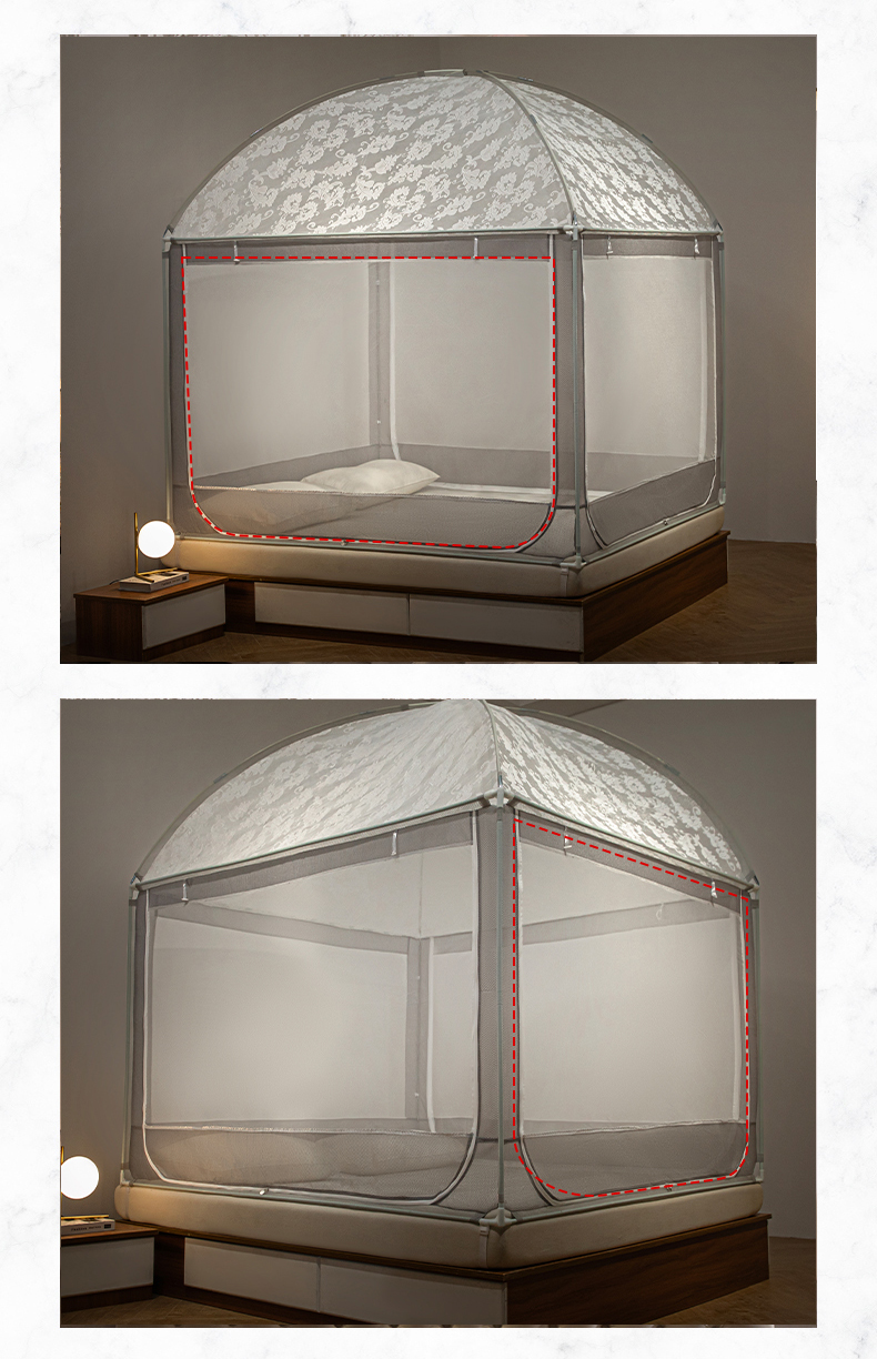 飞轮海2025春夏新款坐床式全包蚊帐-MZ-01 白灰
