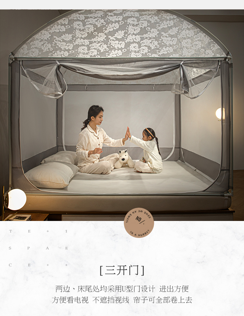 (总)飞轮海蚊帐 2023新款三开门落地遮光蚊帐-L-93,高级灰,芥末绿,奶油黄,香槟