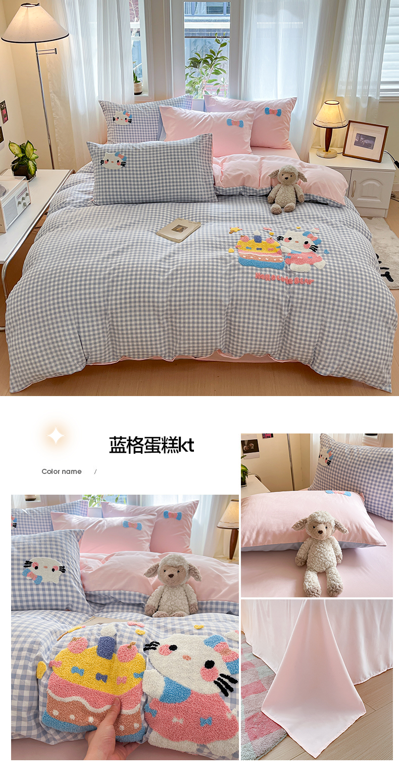 当前位置: 91家纺网 > 商品网购 > 床品套件 > 四件套 > 毛巾绣四件套 > 宇航家纺 2025新款云朵棉卡通毛巾绣四件套 蓝格蛋糕KT