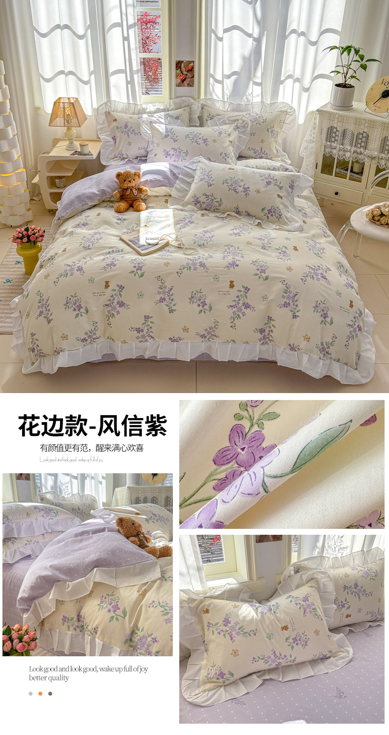 2025沐辰家居-新款全棉13070全棉花边款套件 花边款-风信紫