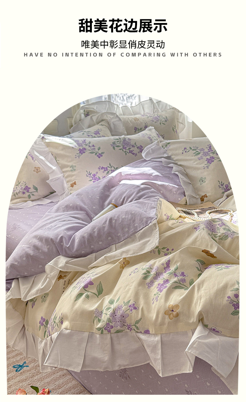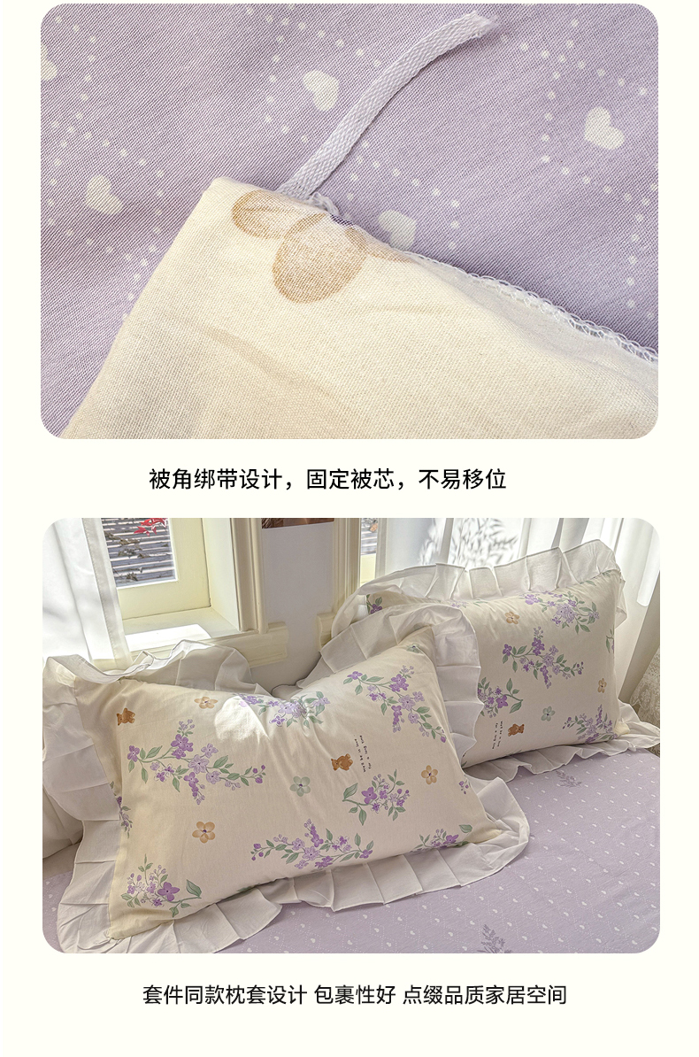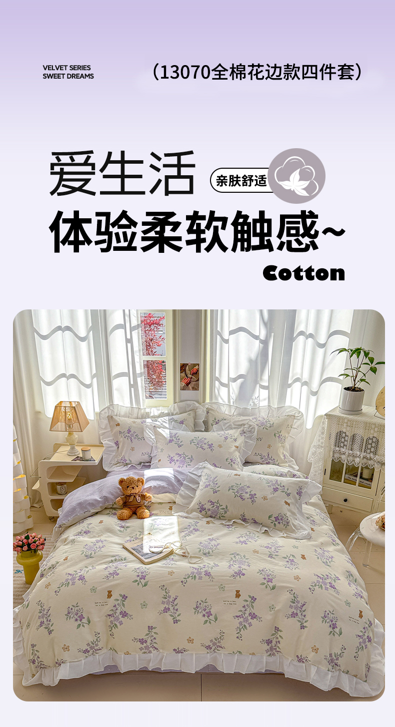 商品名称:2025沐辰家居-新款全棉13070全棉花边款套件 花边款-风信紫