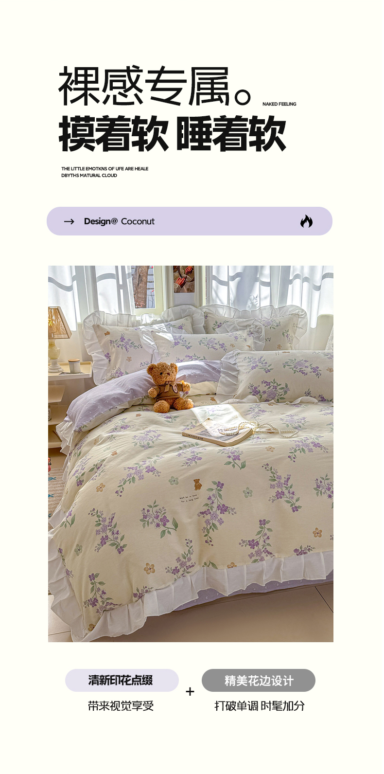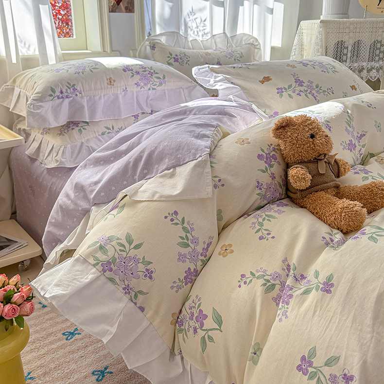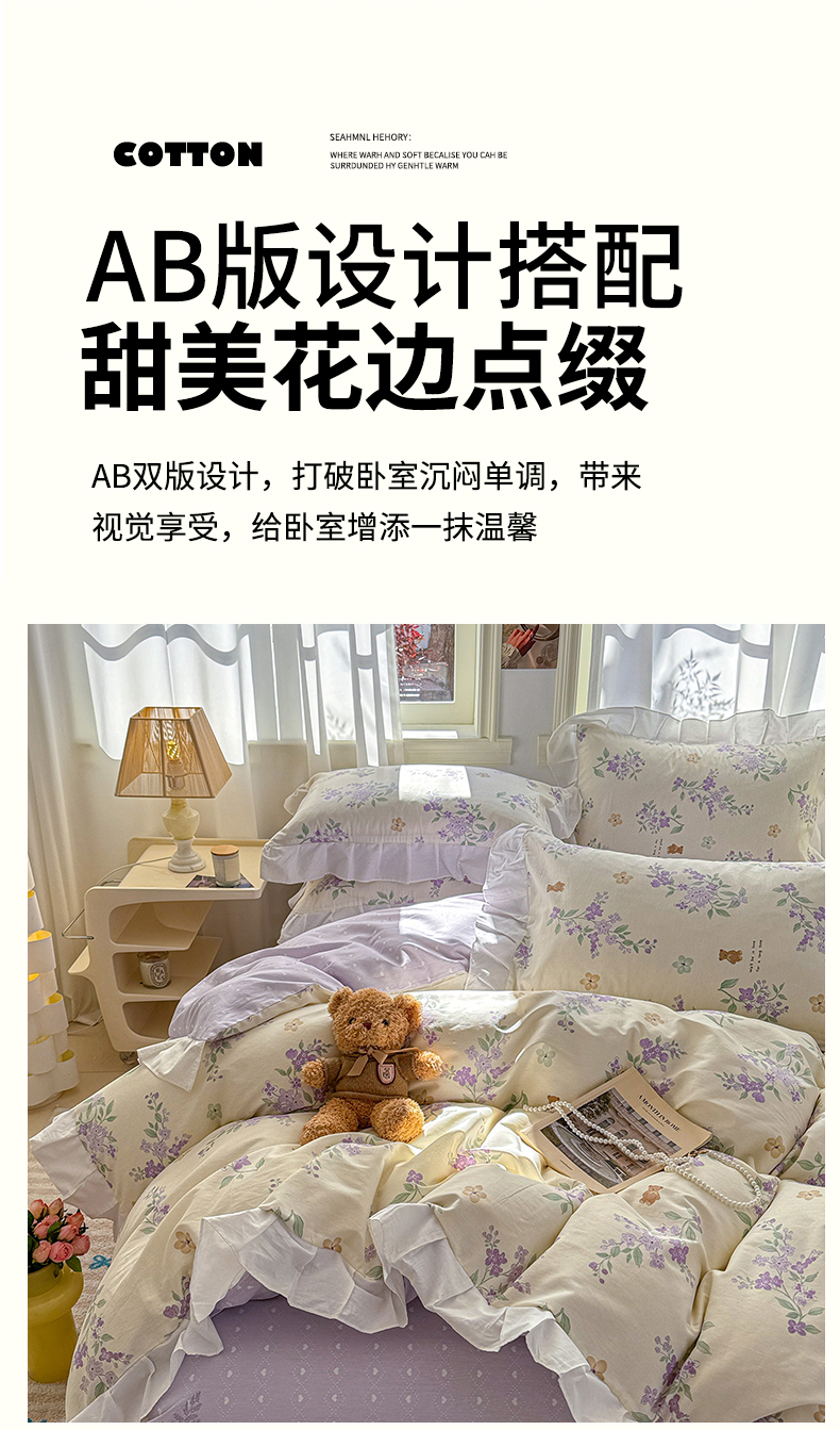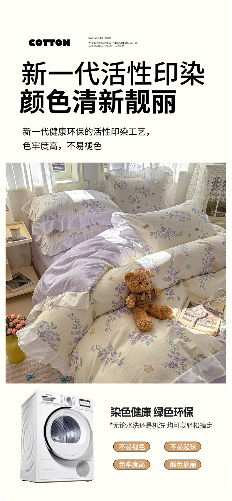 商品名称:2025沐辰家居-新款全棉13070全棉花边款套件 花边款-风信紫