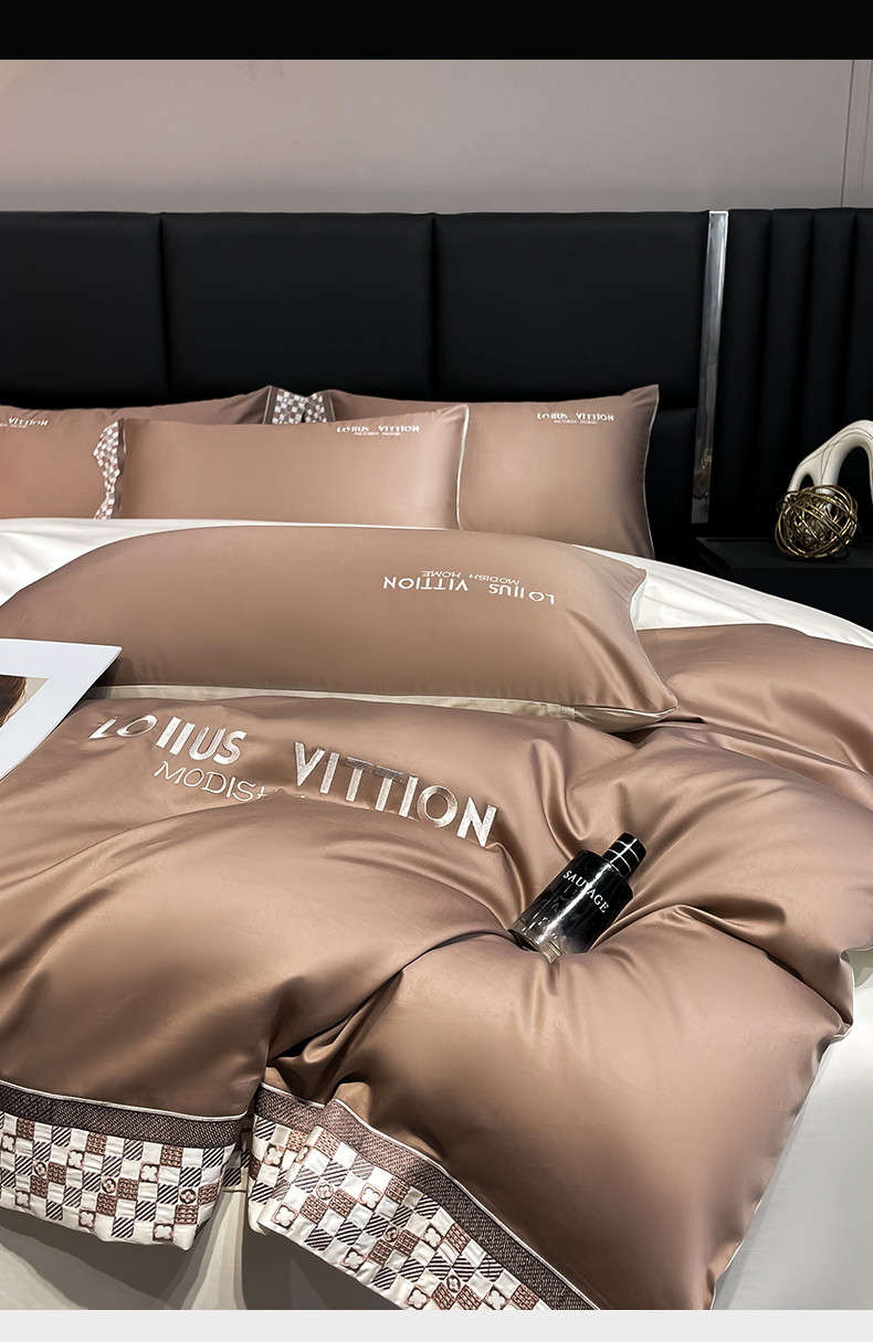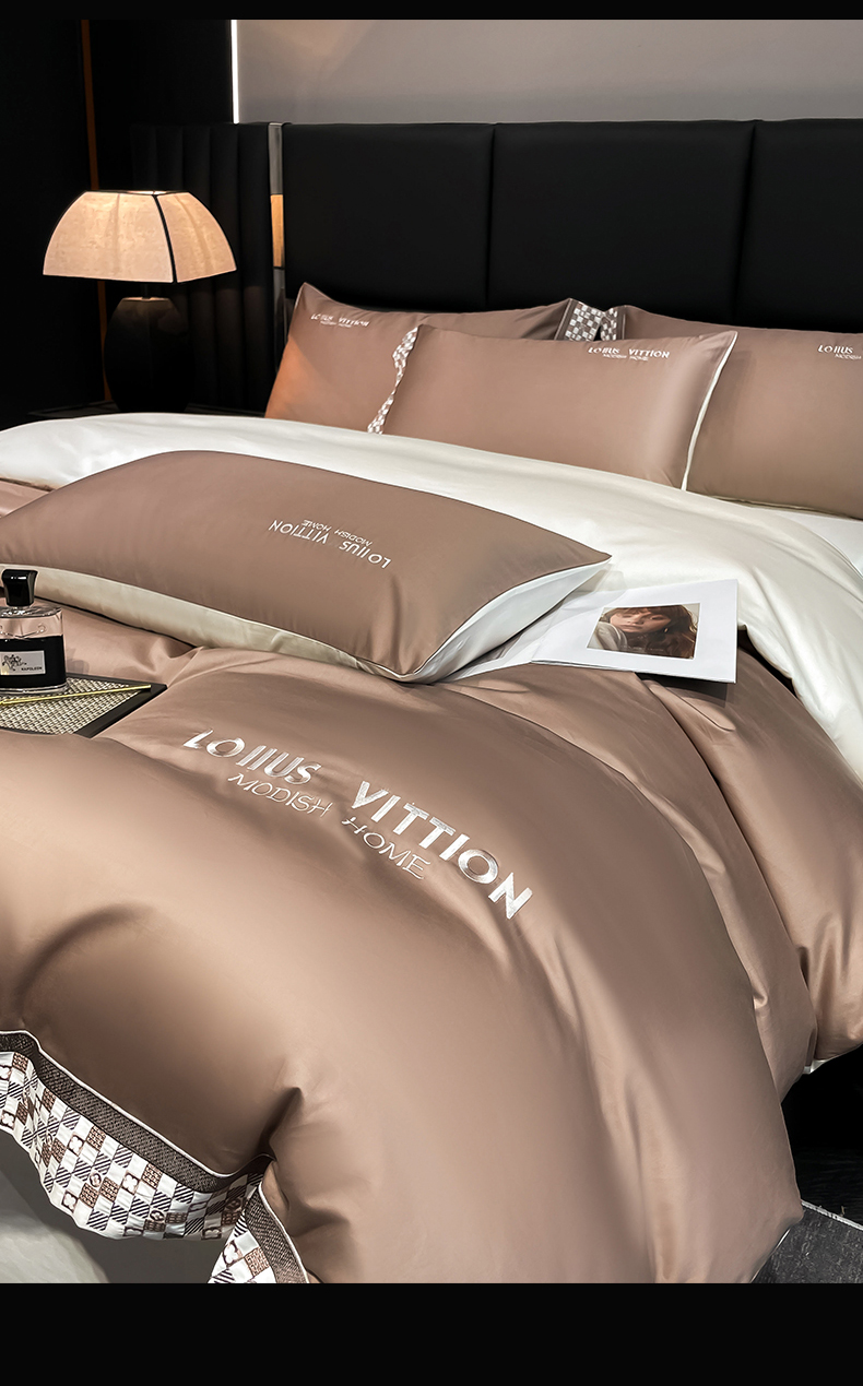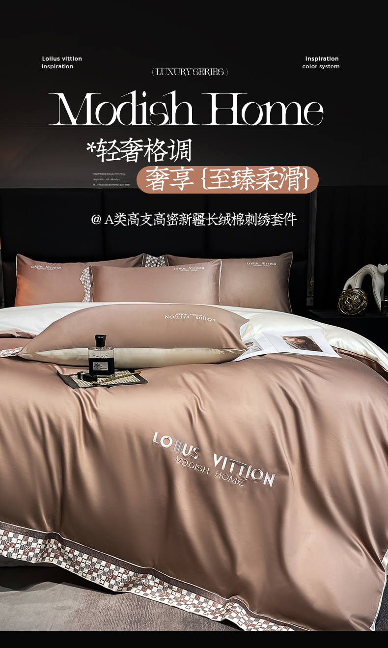 (总)瑞驰家纺 2025新款长绒棉绣花莱桉系列四件套,莱桉-贝壳白,莱桉-朵拉灰,莱桉-驼褐,莱桉-棕橙