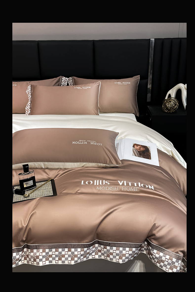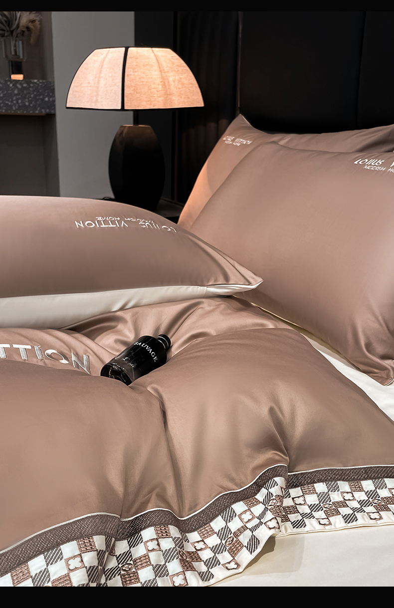 瑞驰家纺 2025新款长绒棉绣花棋盘格系列四件套 棋盘格-中咖
