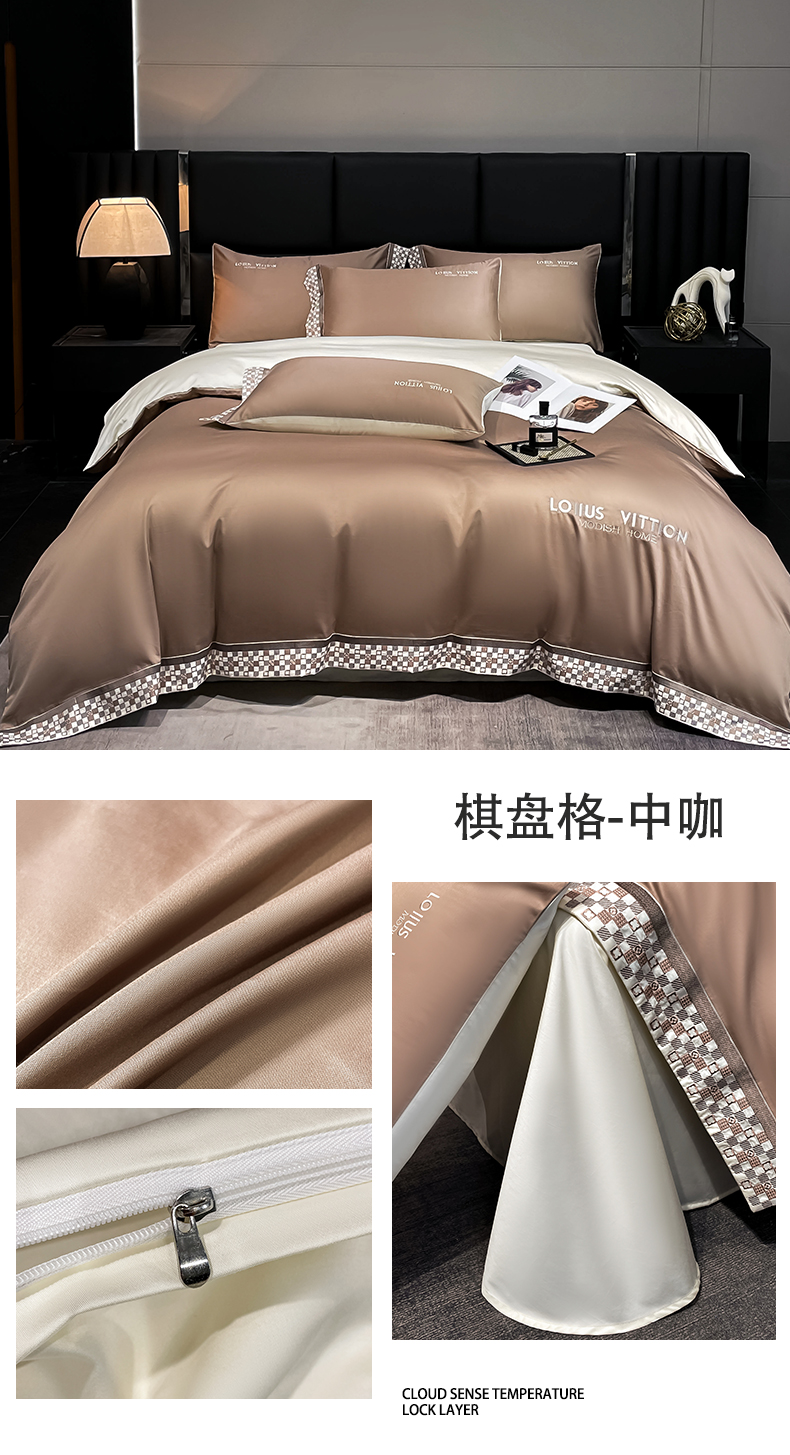 (总)瑞驰家纺 2025新款长绒棉绣花棋盘格系列四件套,棋盘格-高级灰,棋盘格-米黄咖,棋盘格-摩卡橙,棋盘格-中咖