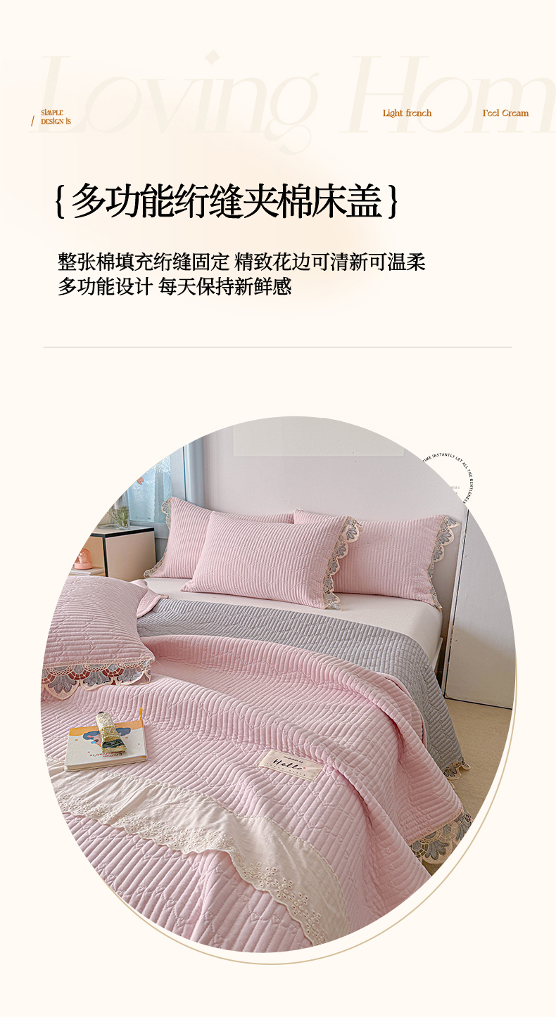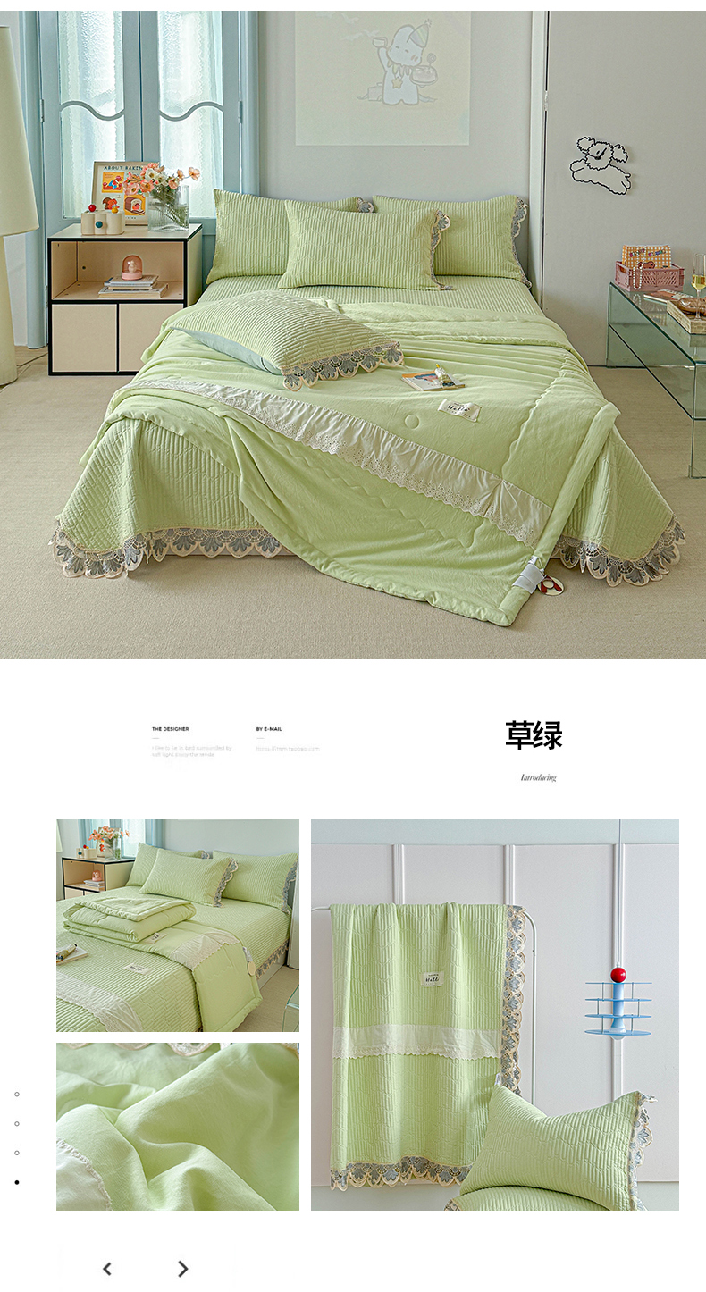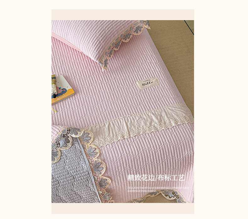 • 91家纺网 家纺一手货源 找家纺 (总)源舜家纺 2026新款全棉双层纱棉花边榻榻米炕盖款,组合图仅供参考,波点粉,波点灰,波点绿,波点米,波点杏,波点紫