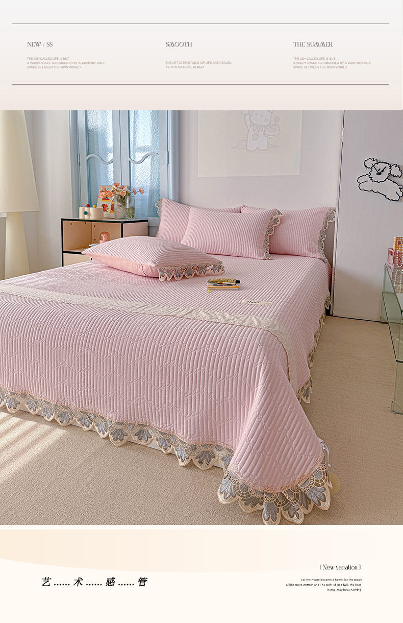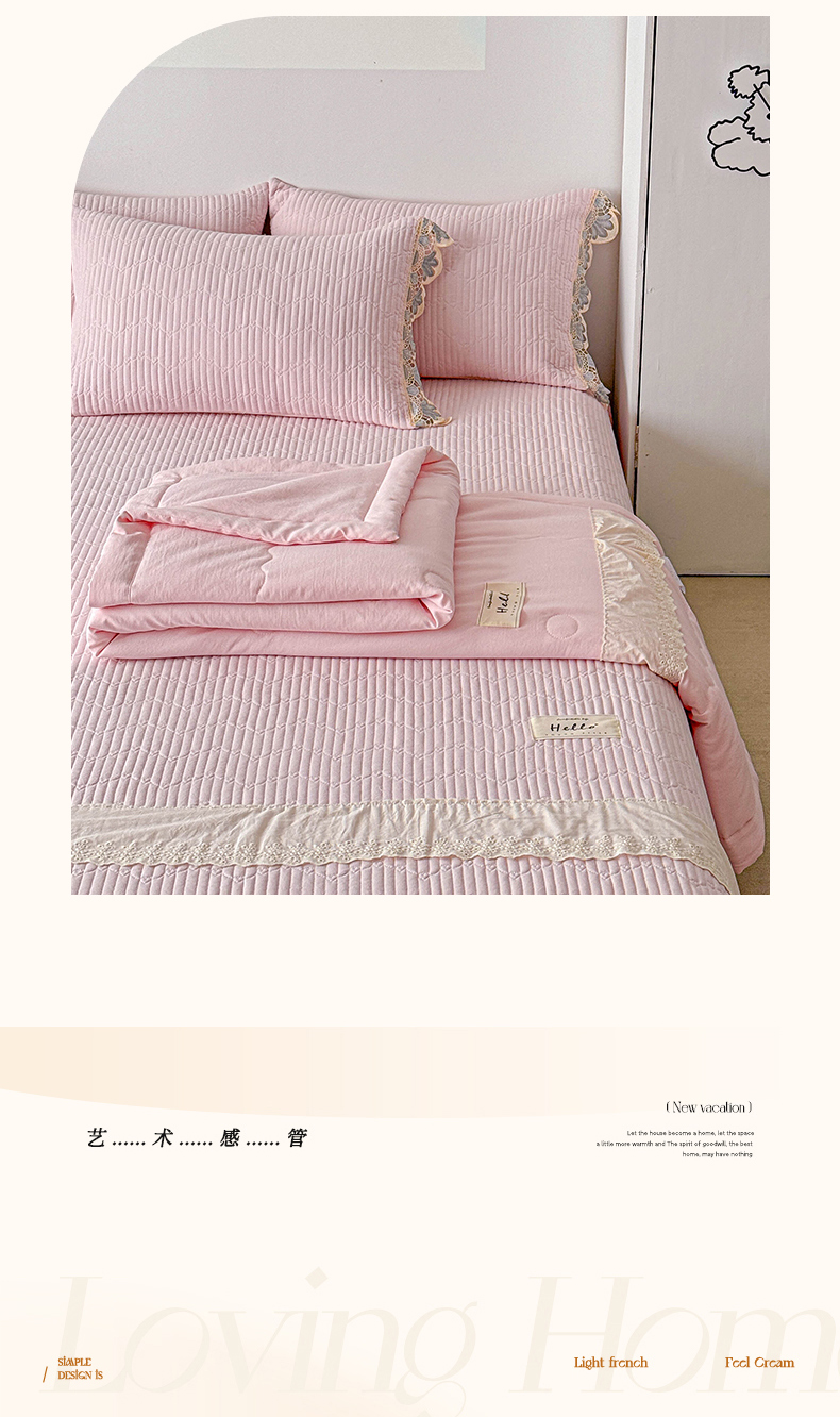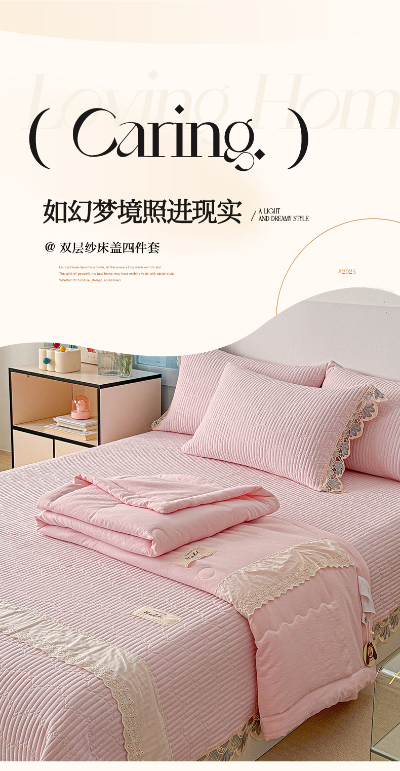 • 91家纺网 家纺一手货源 找家纺 源舜家纺 2025双层纱床盖三件套夏被四件套 粉色