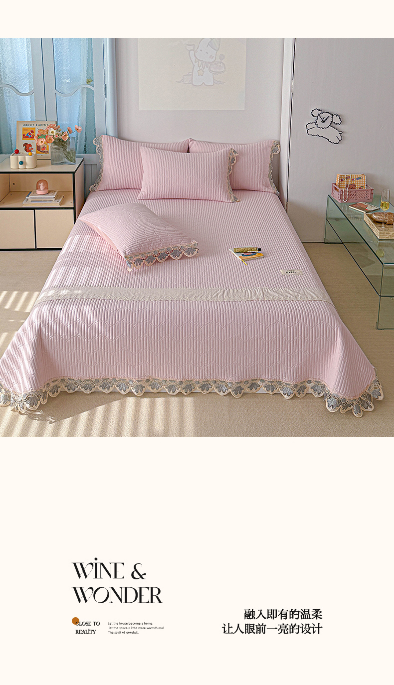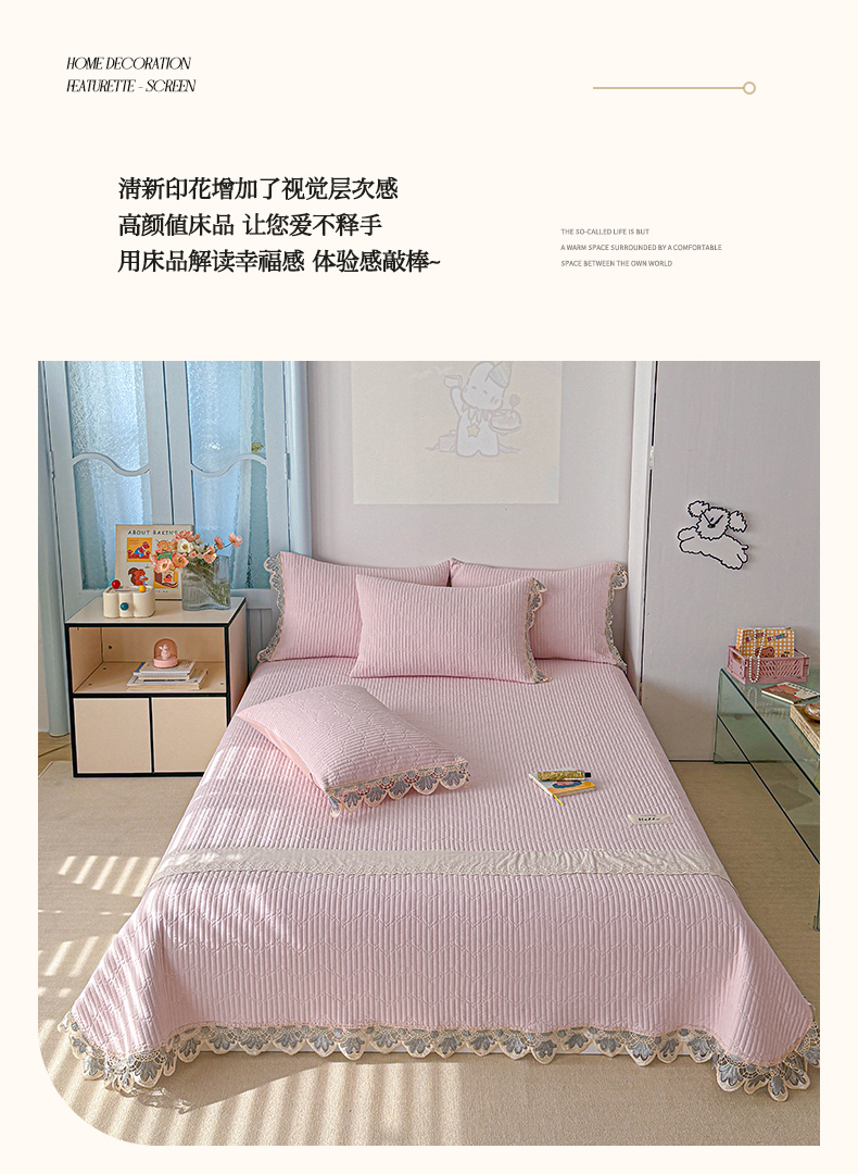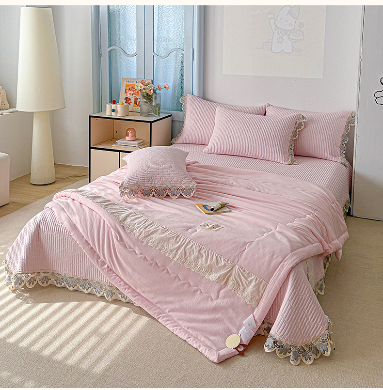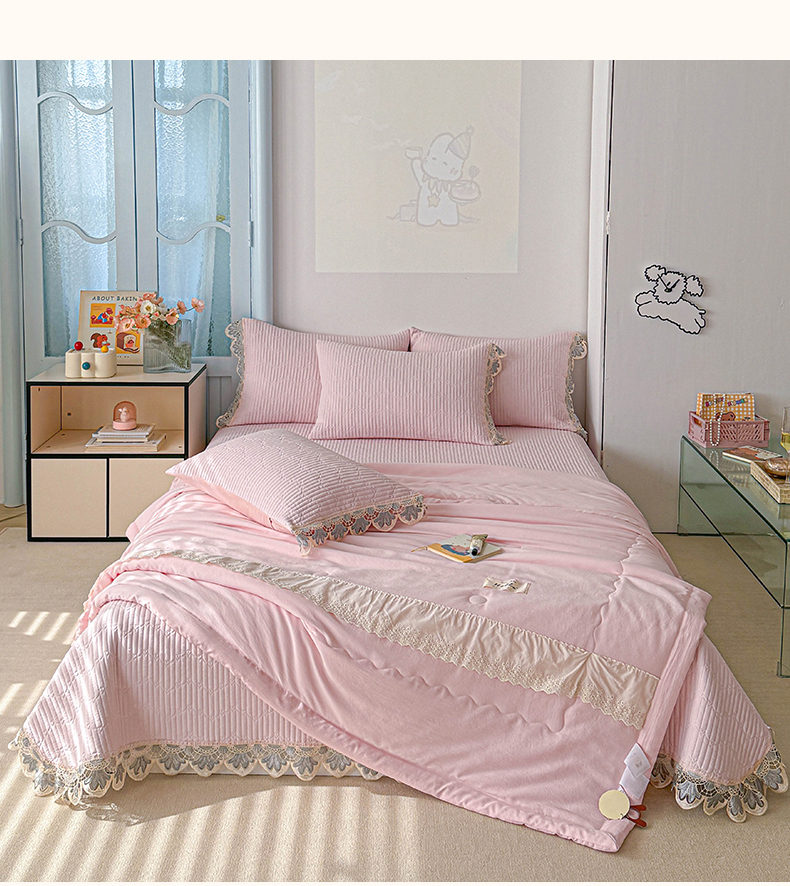 • 91家纺网 家纺一手货源 找家纺 源舜家纺 2025双层纱床盖三件套夏被四件套 粉色