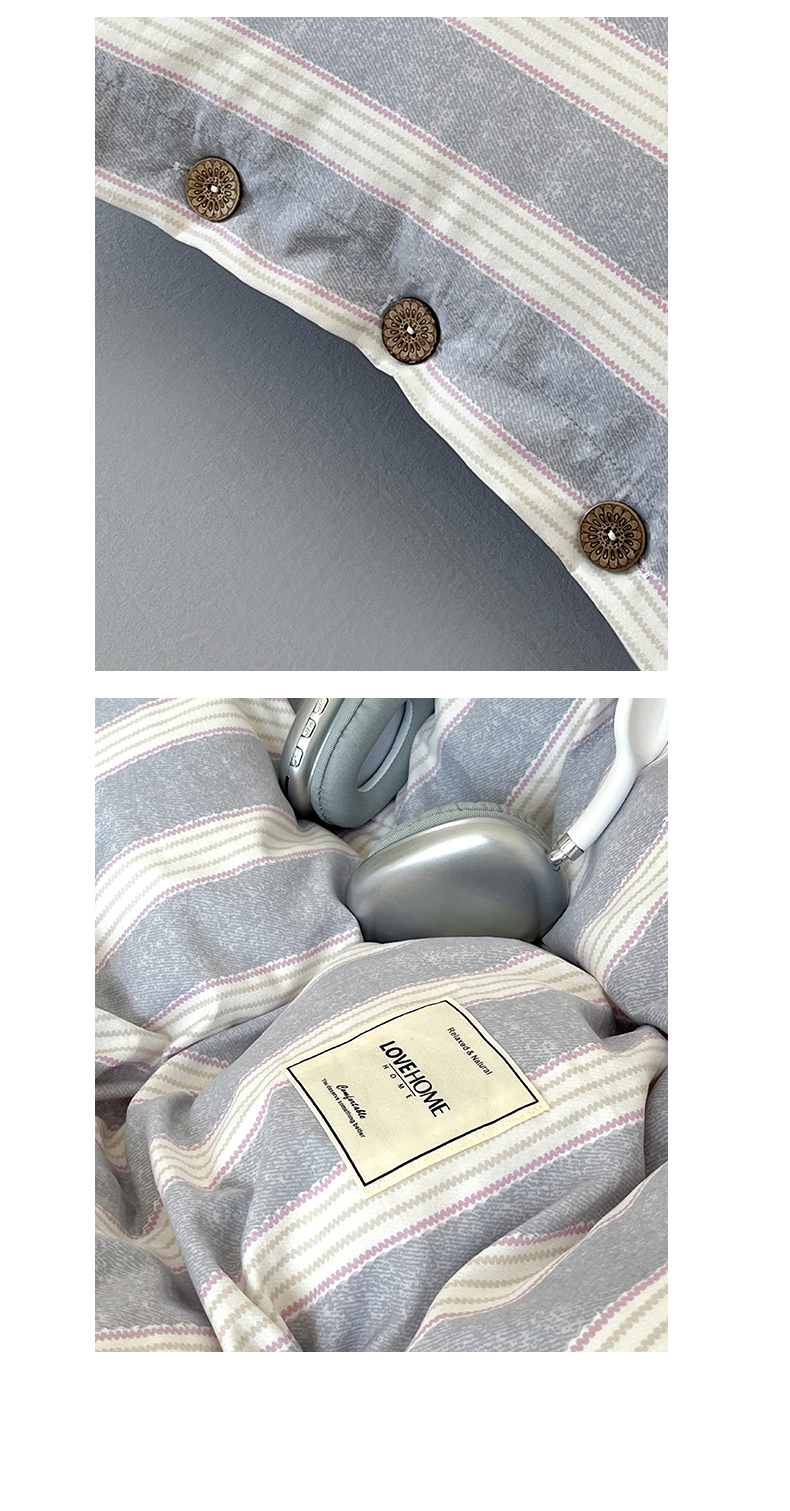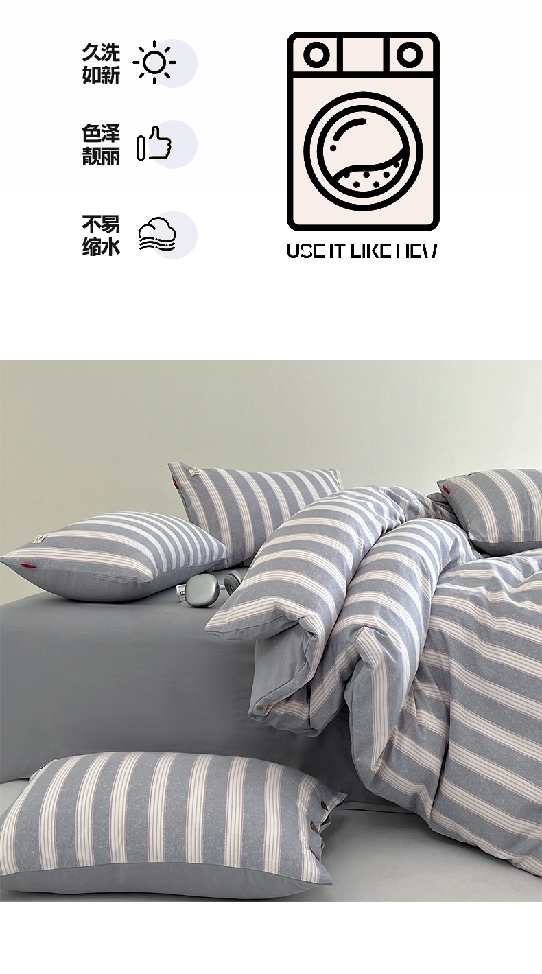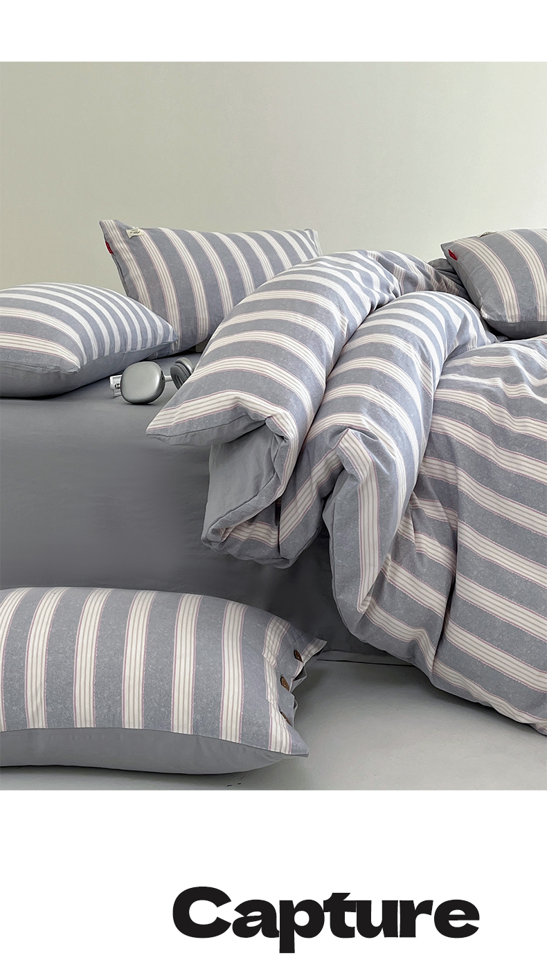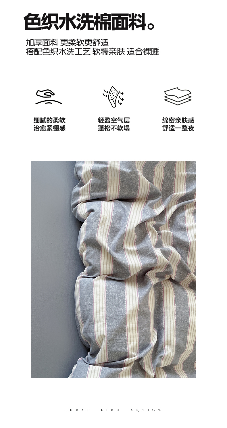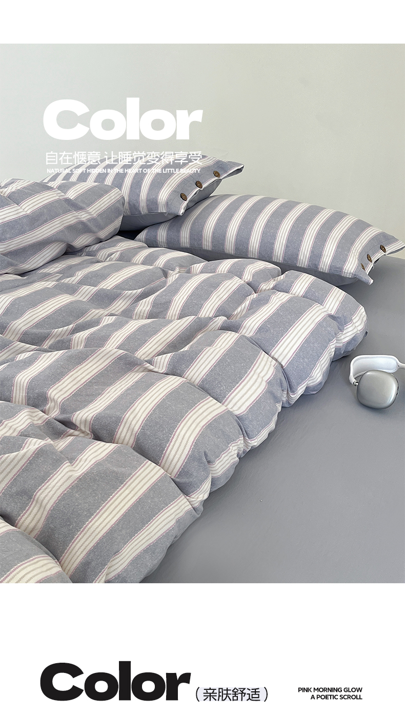商品名称:睡美美 2025新款加厚色织水洗棉印染条纹四件套 蓝灰条纹