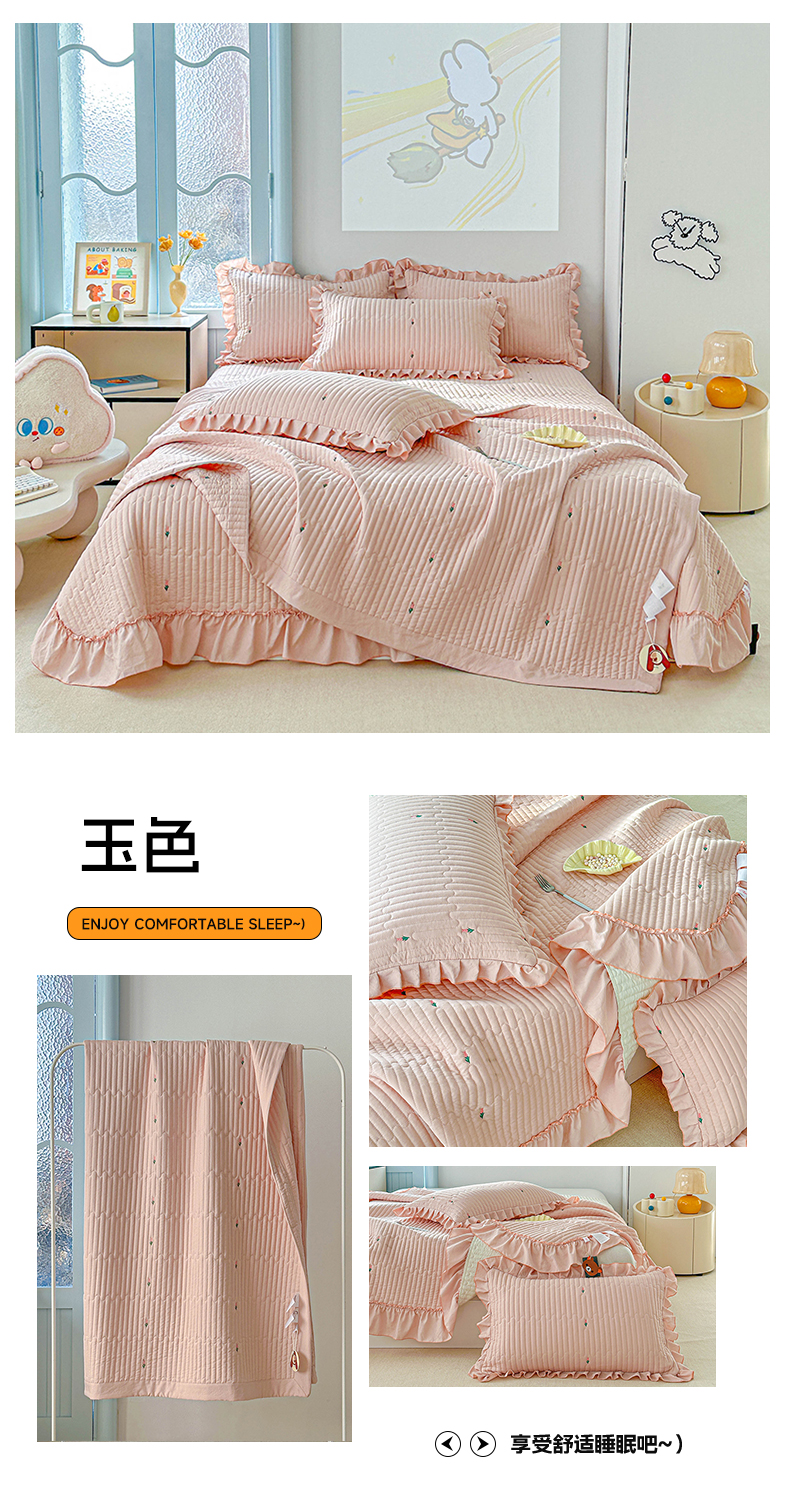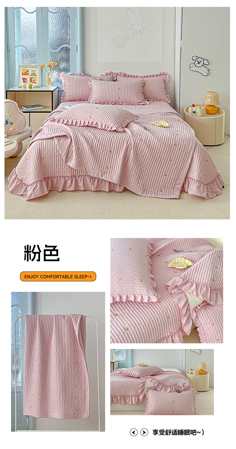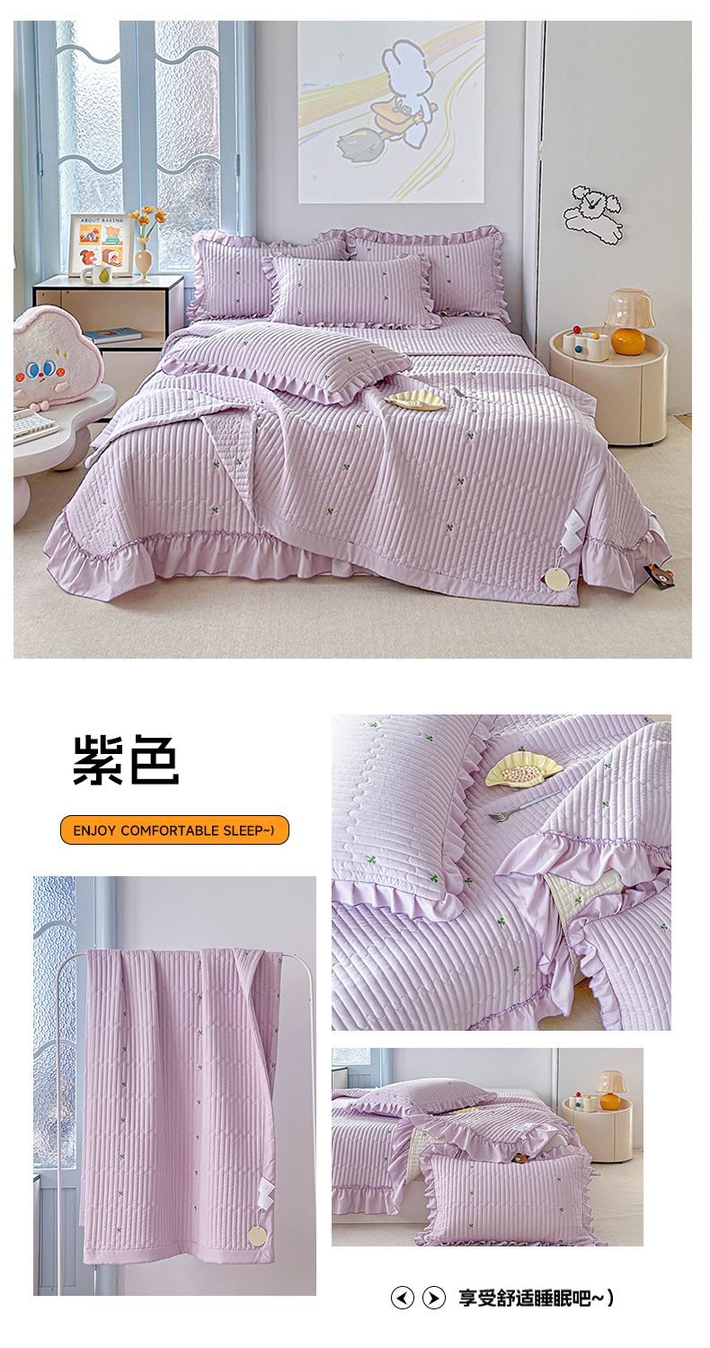 (总)源舜家纺 2025新款无弹针织绣花小清新床盖夏被四件套,粉色,灰色,蓝色,绿色,玉色,紫色