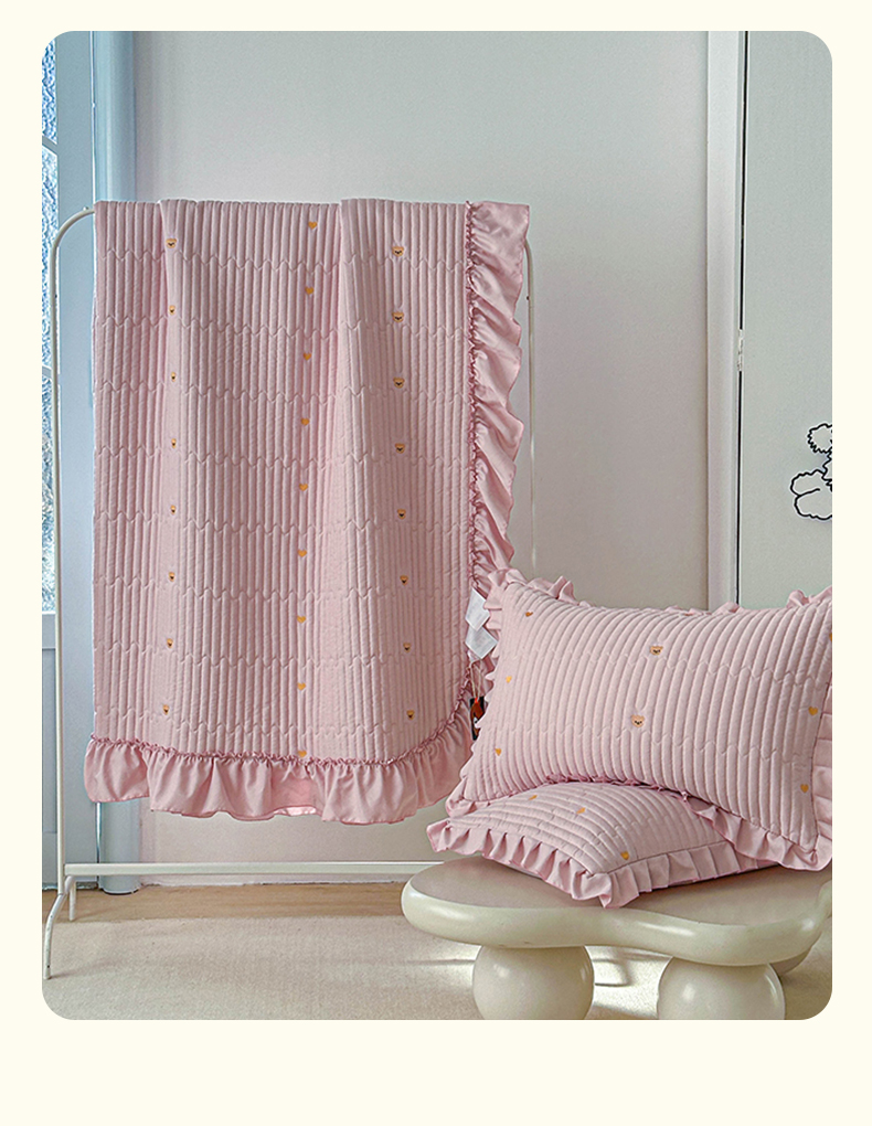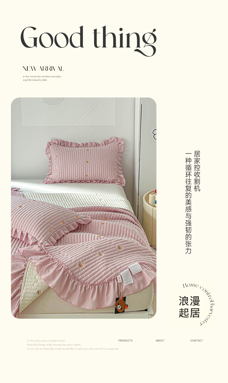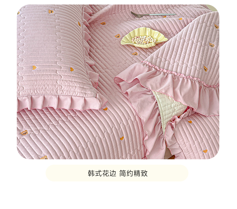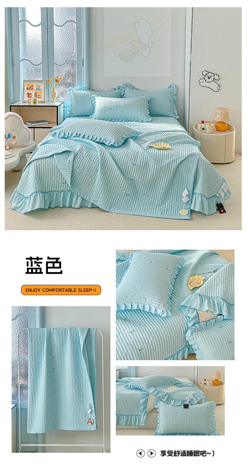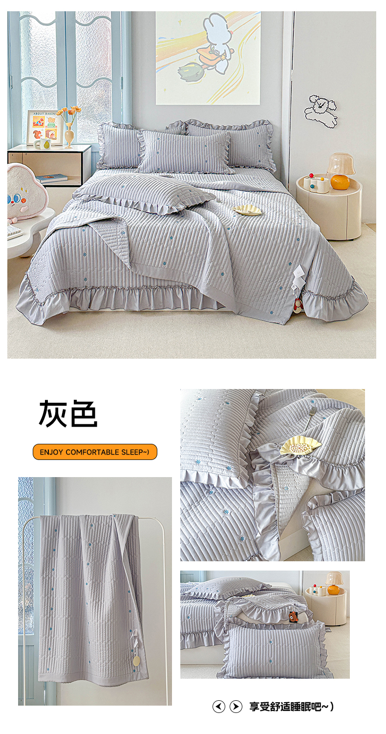 (总)源舜家纺 2025新款色织棉简约韩系花边床盖三件套,简约灰,简约粉,简约绿,简约驼,简约蓝