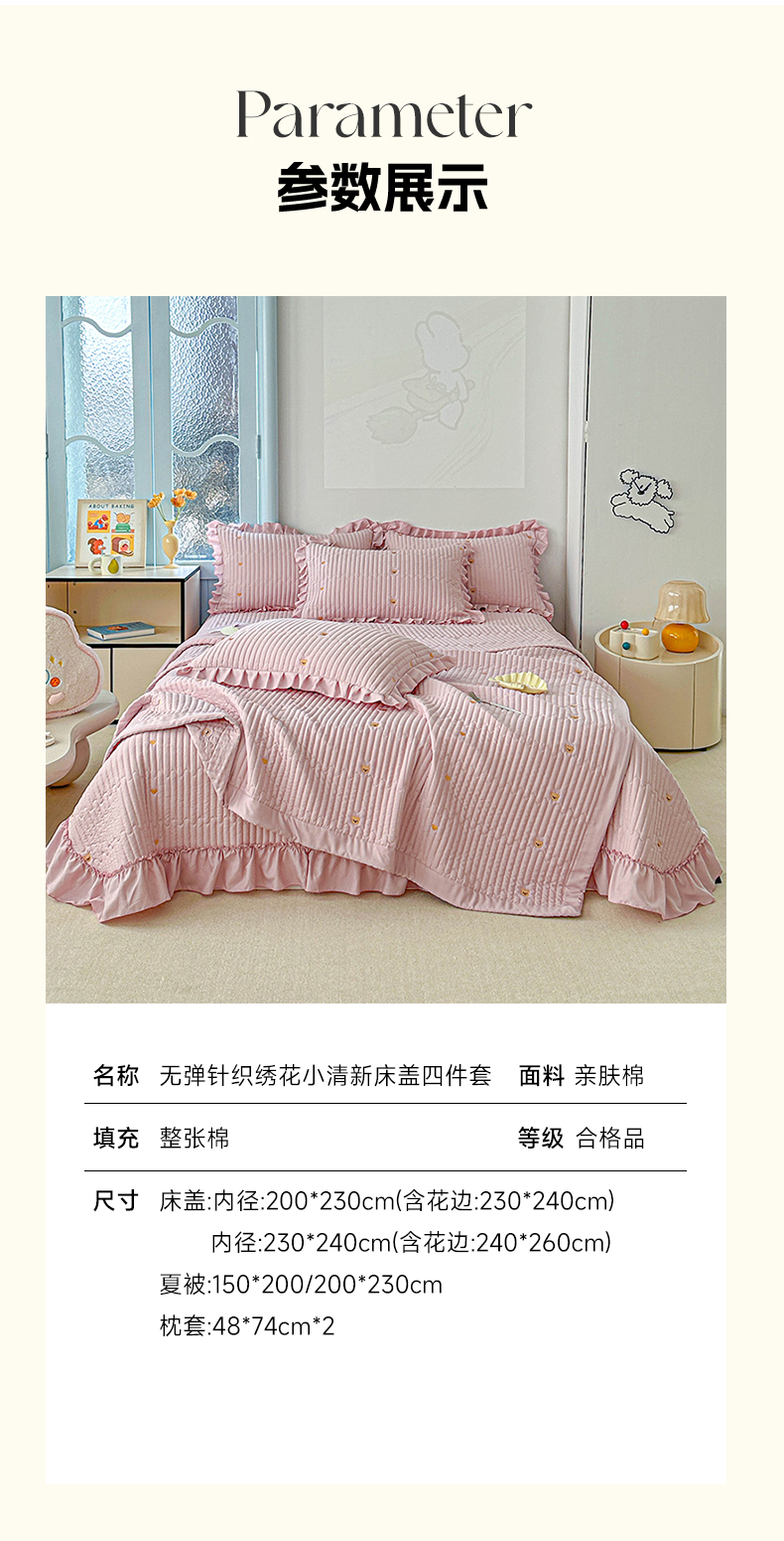 商品名称:(总)源舜家纺 2025新款无弹针织绣花小清新床盖夏被四件套