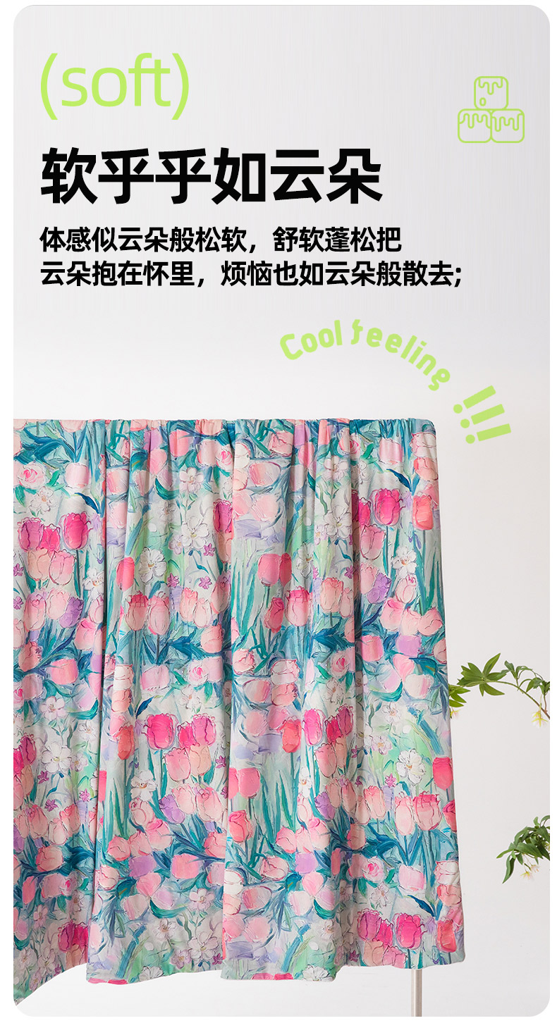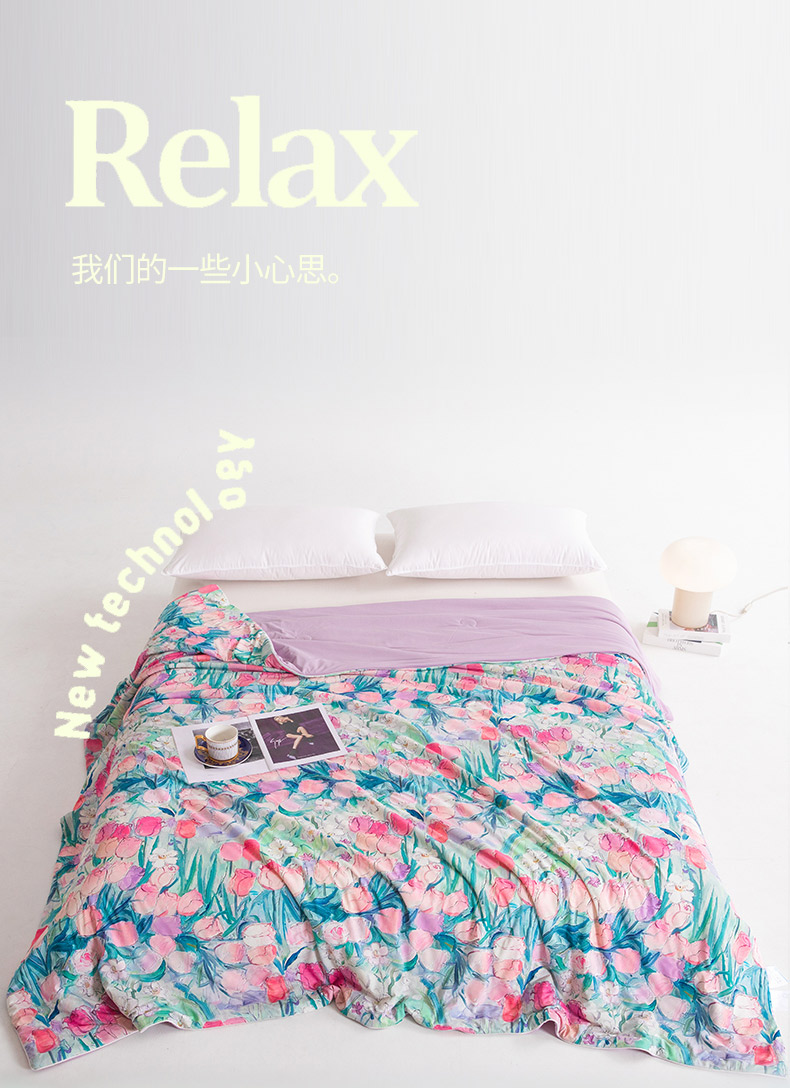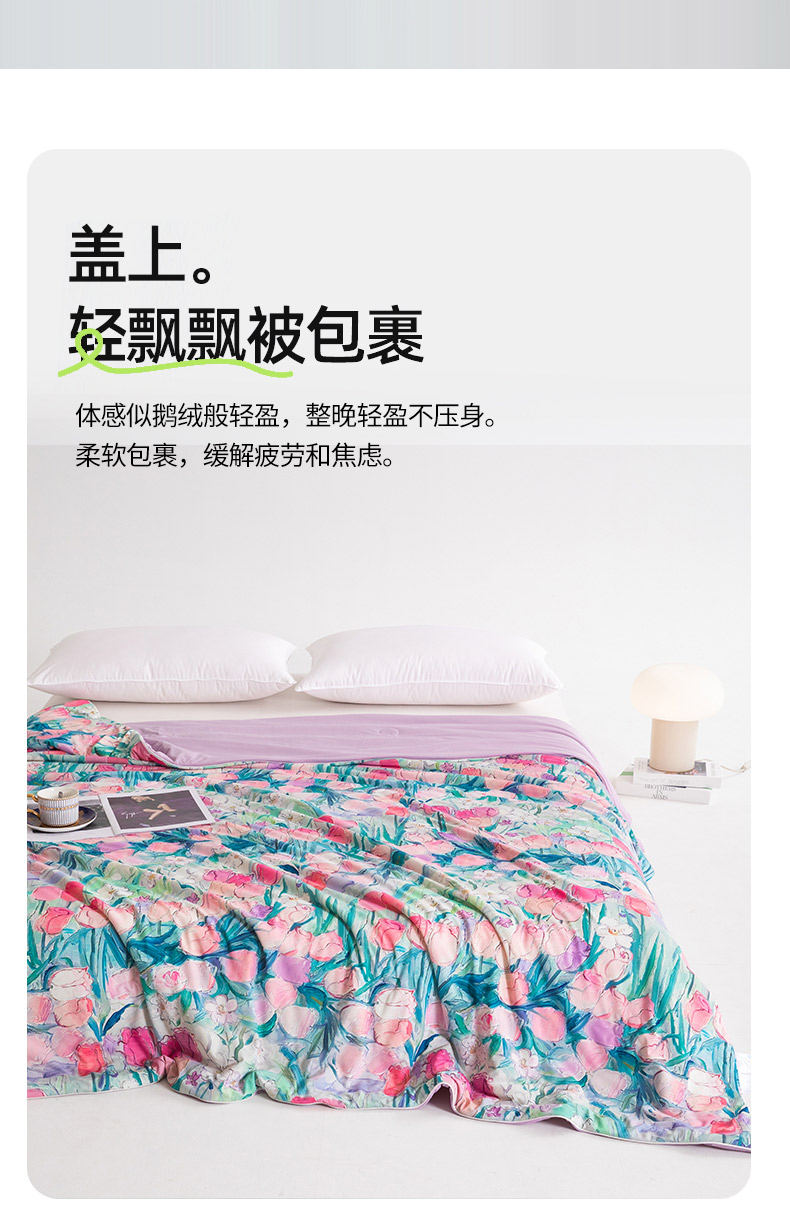 (总)睡棉坊 2025新款数码印花凉感丝水墨画系列夏被-场景二,梵高灰,国色东方,静若繁花,媚格绿,迷香紫,郁情粉