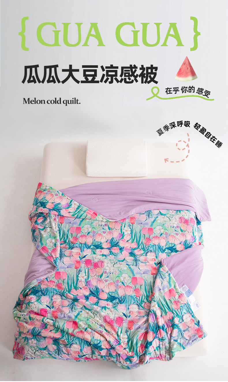 睡棉坊2025新款数码印花高克重凉感丝夏凉被呱呱被10%大豆纤维填充带质检报告 郁情粉