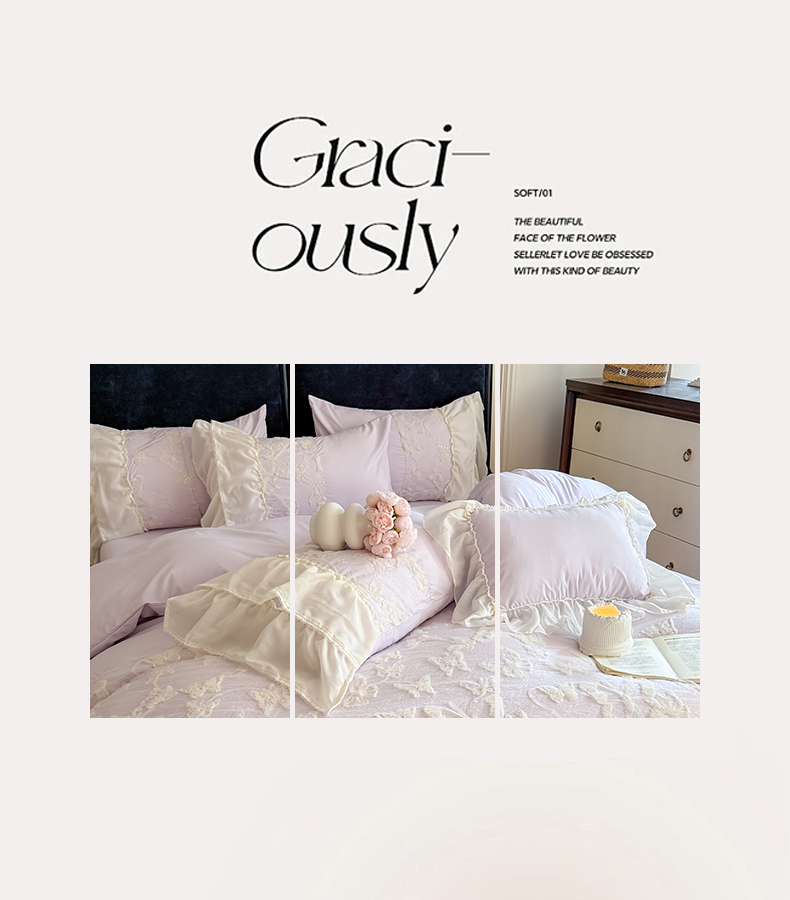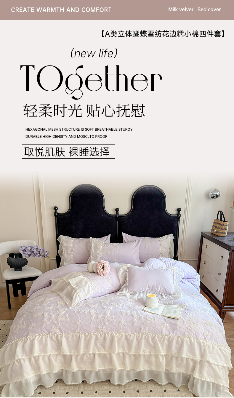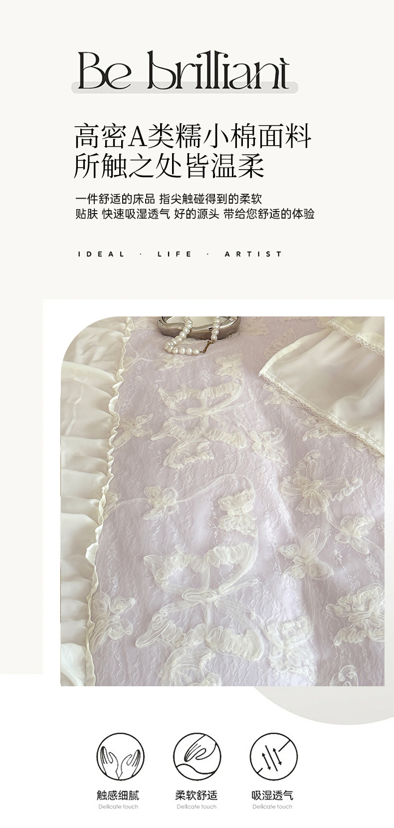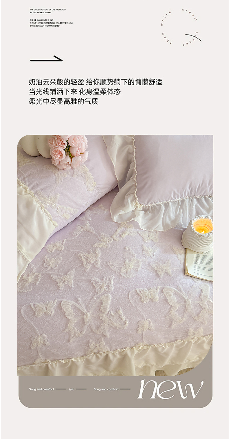 (总)吾欢心 2025新款糯小棉立体蝴蝶花边四件套-蝶恋花系列,蝶恋花白,蝶恋花粉,蝶恋花黄,蝶恋花咖,蝶恋花蓝,蝶恋花绿,蝶恋花紫