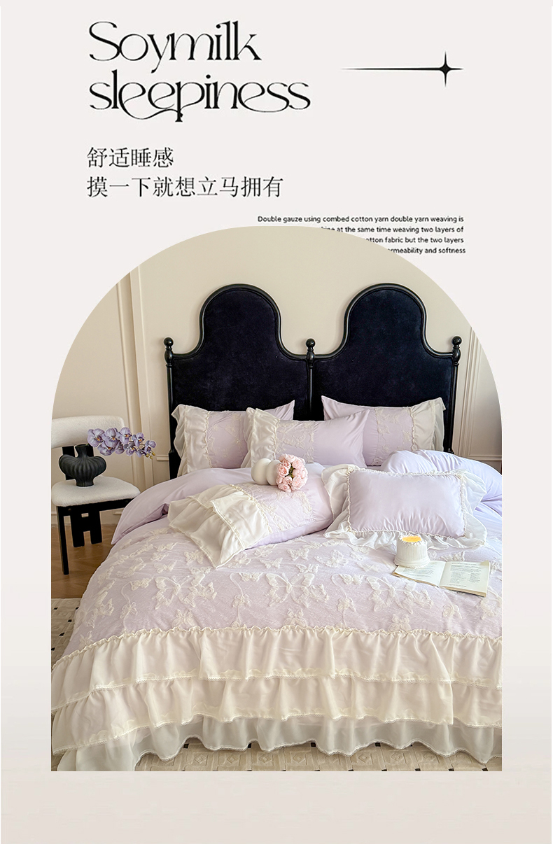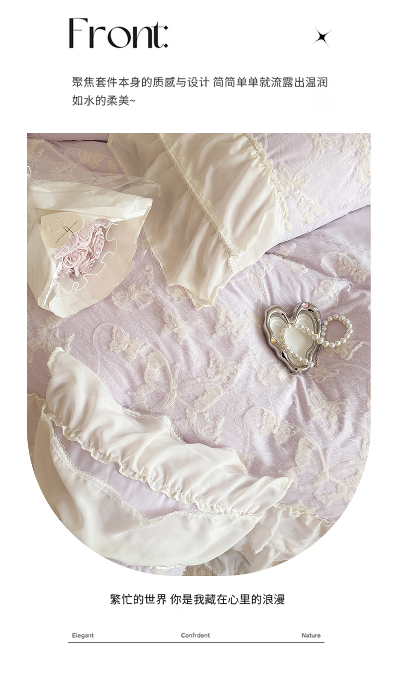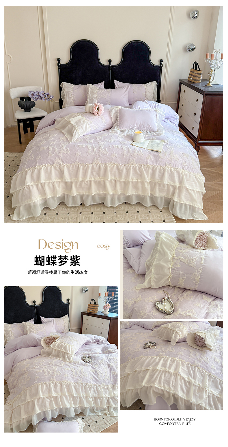 商品名称:吾欢心2025新款蝴蝶梦立体定制蝴蝶加三层雪纺花边系列四件套 蝴蝶梦紫