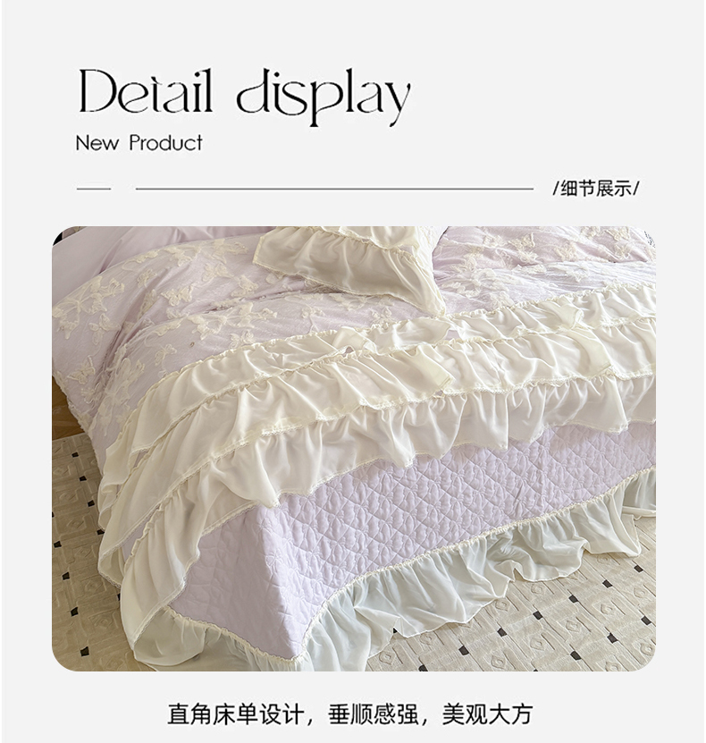 (总)吾欢心 2025新款公主风雪纺边四季通用夹棉床盖,床盖白,床盖粉,床盖黄,床盖咖,床盖绿,床盖抹茶绿,床盖紫