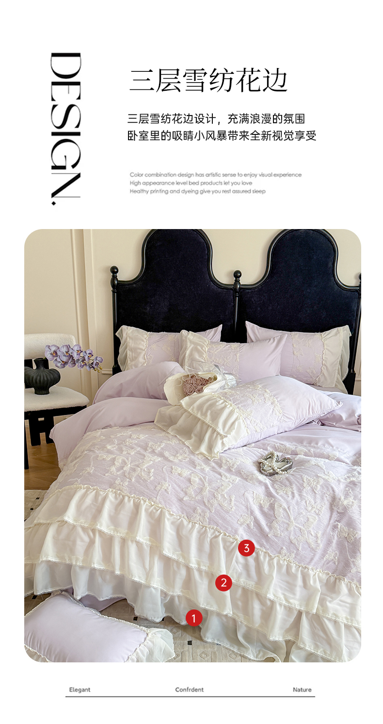 (总)吾欢心 2025秋冬新款加厚雕花绒婴儿绒安娜贝尔系列法式双层花边四件套,安娜贝尔白,安娜贝尔粉,安娜贝尔咖,安娜贝尔蓝,安娜贝尔绿,安娜贝尔紫