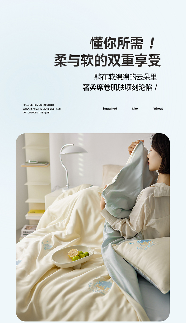 (总)简纯主义 2025新款A类100S超细旦天丝简约纯色单品被套,经典灰,暮蓝,柔霜粉,杏仁白,云醉了,紫砂灰
