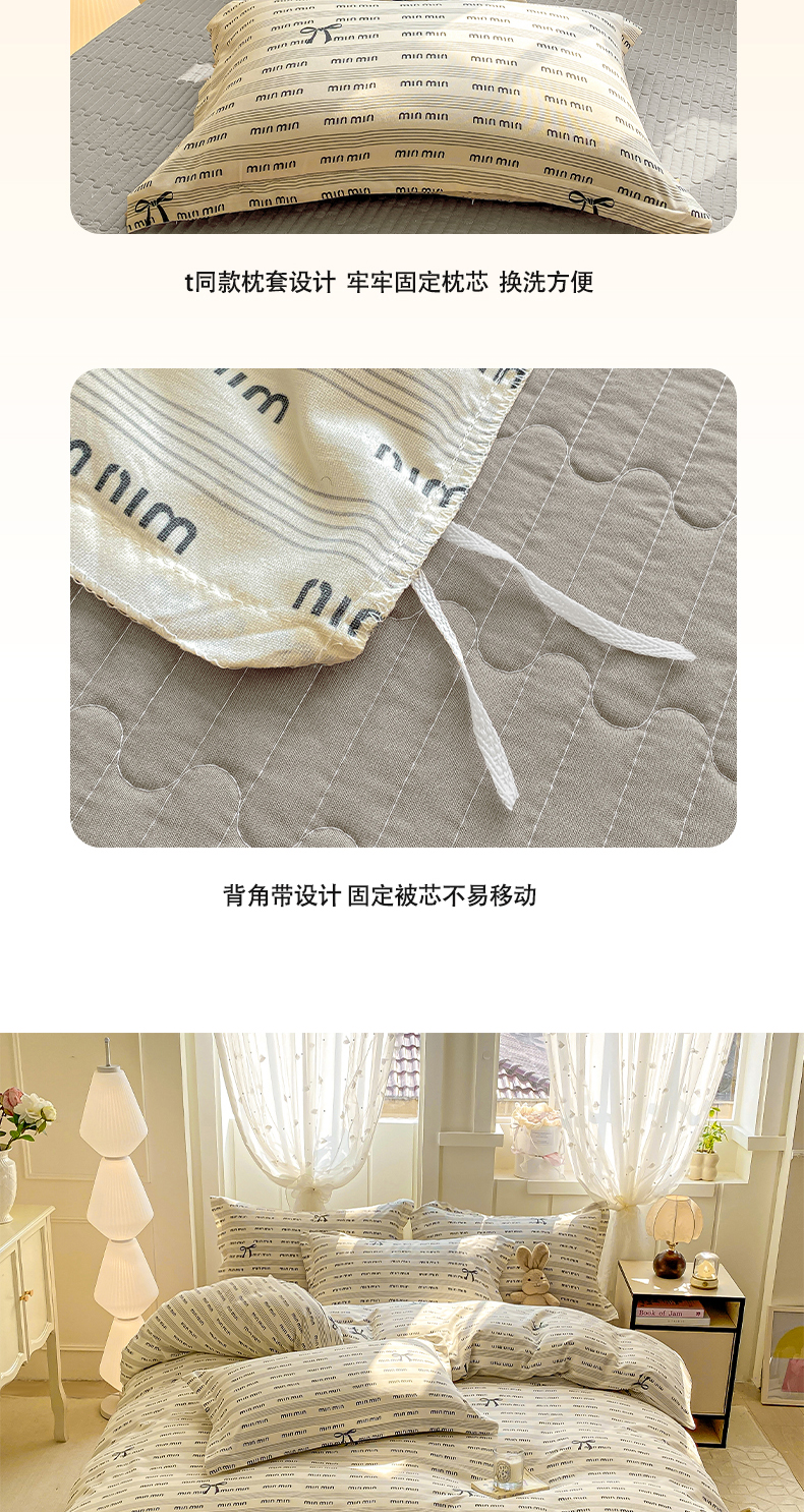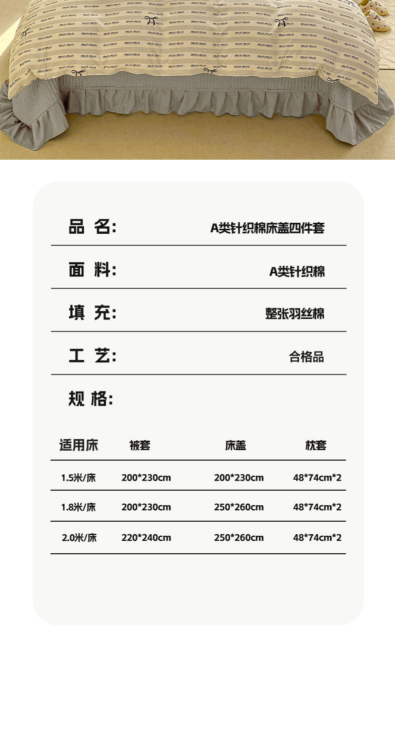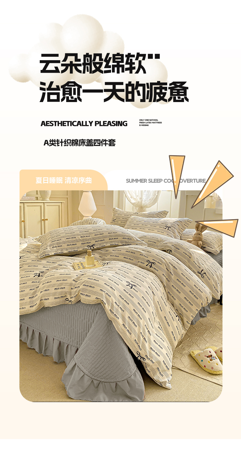 商品名称:梦莱斯 2025直播爆款公主风A类针织棉床盖四件套AA版被套 i-米结灰