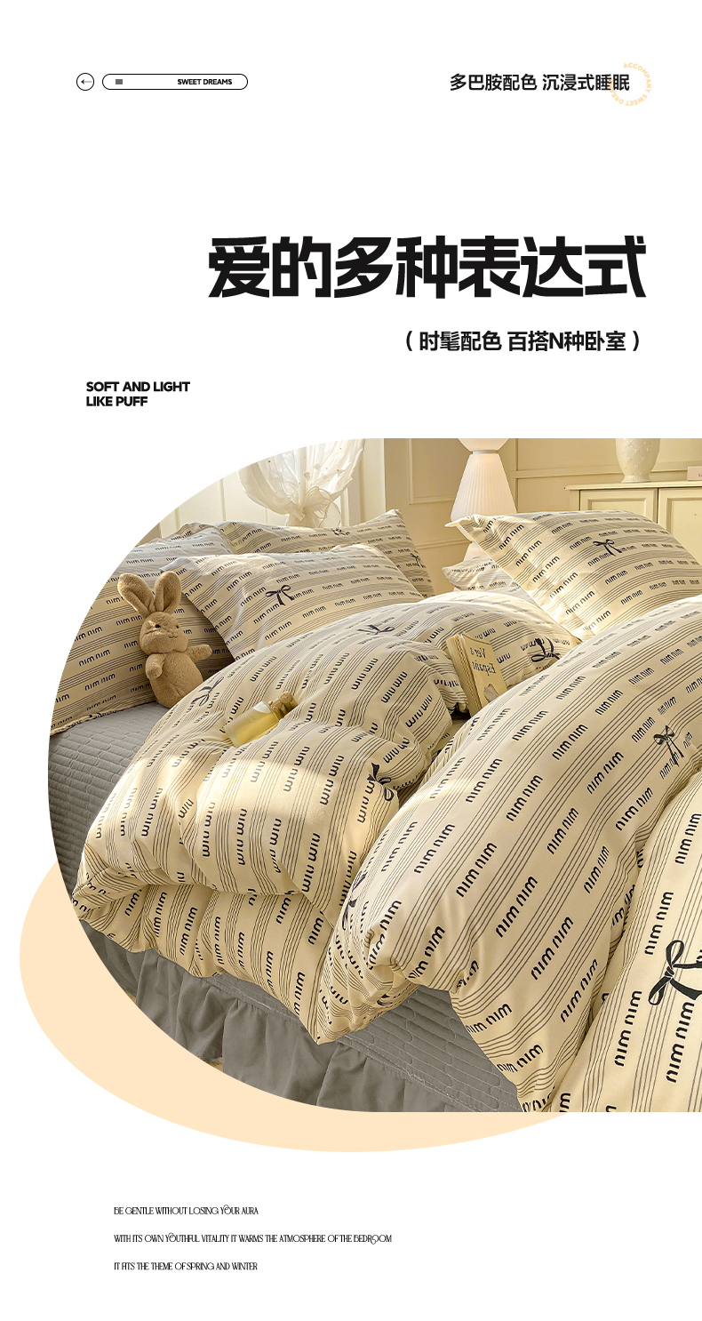 (总)梦莱斯 2025新款泡泡绒豆豆绒加厚牛奶绒四件套 - 印花系列,蝶影粉,赫本蝴蝶,花妖,咖色蝴蝶结,顽皮熊,星空黄,熊猫绿,炫彩紫,字母爱心