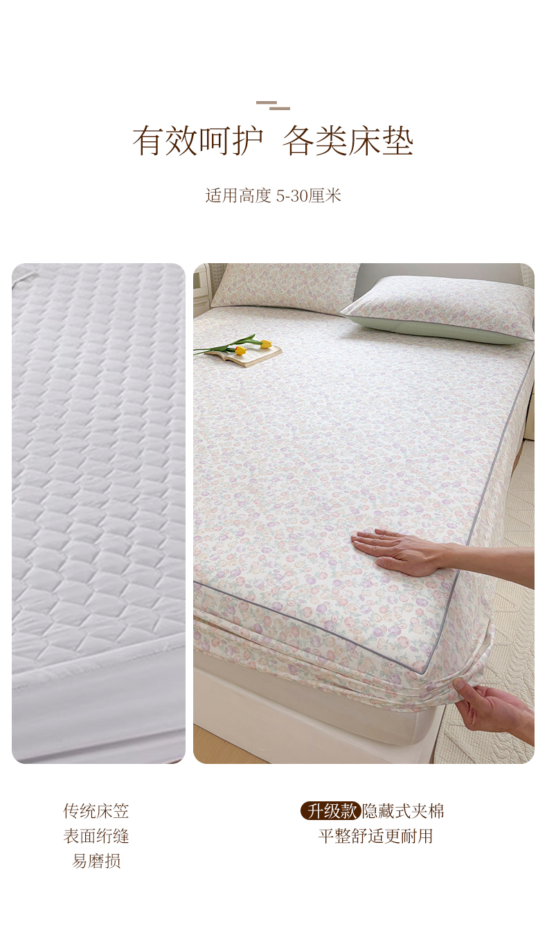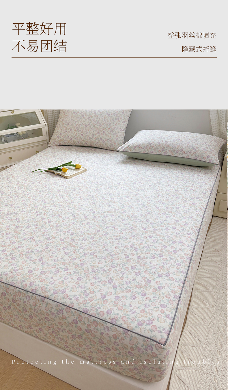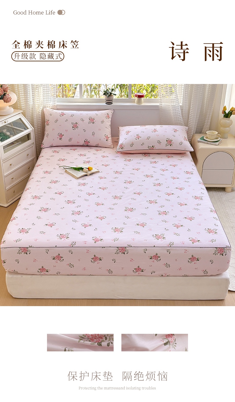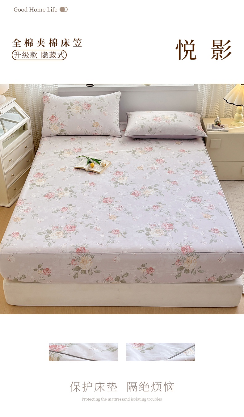 商品名称:元元被芯 2025新款40支13372全棉印花全棉隐藏式夹棉床笠 悠然