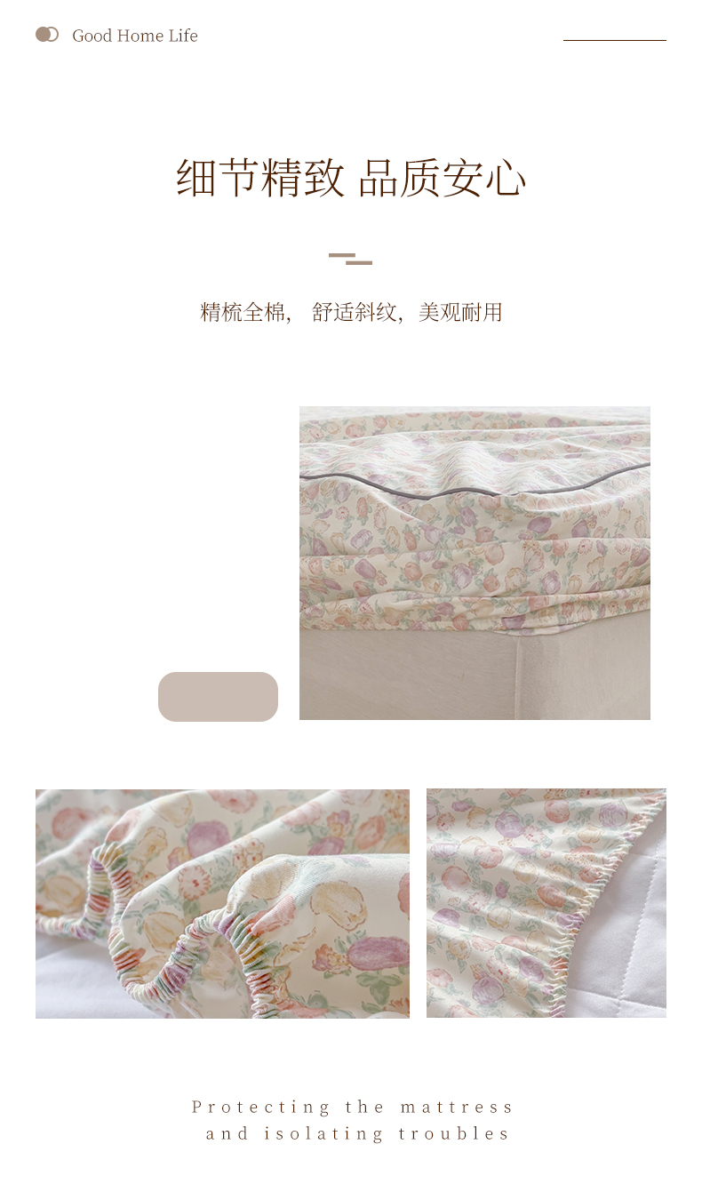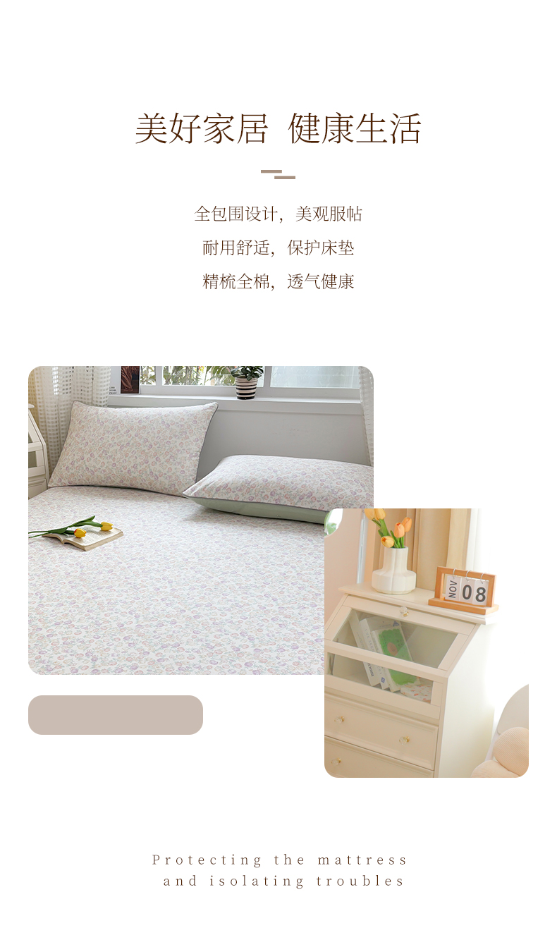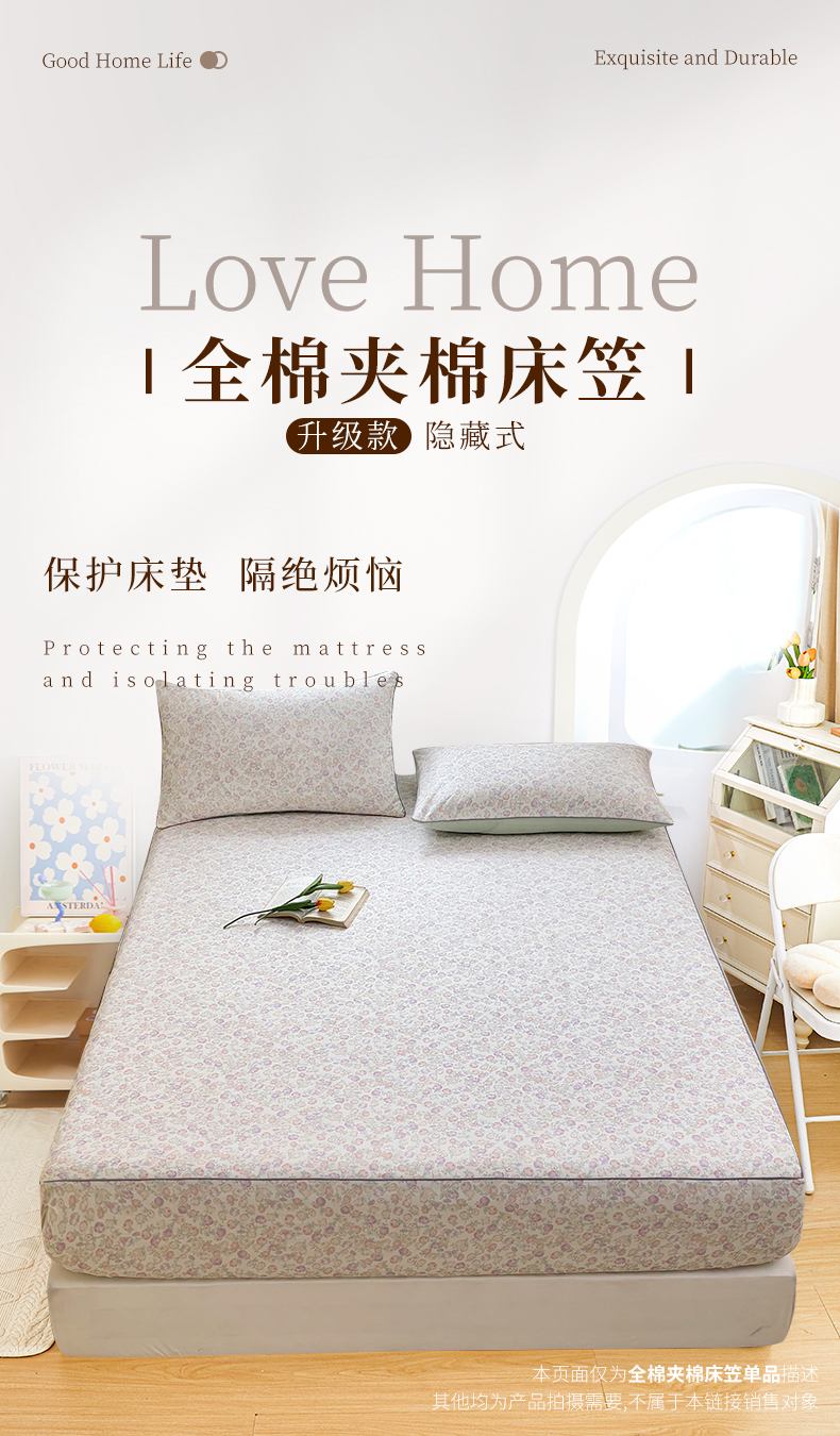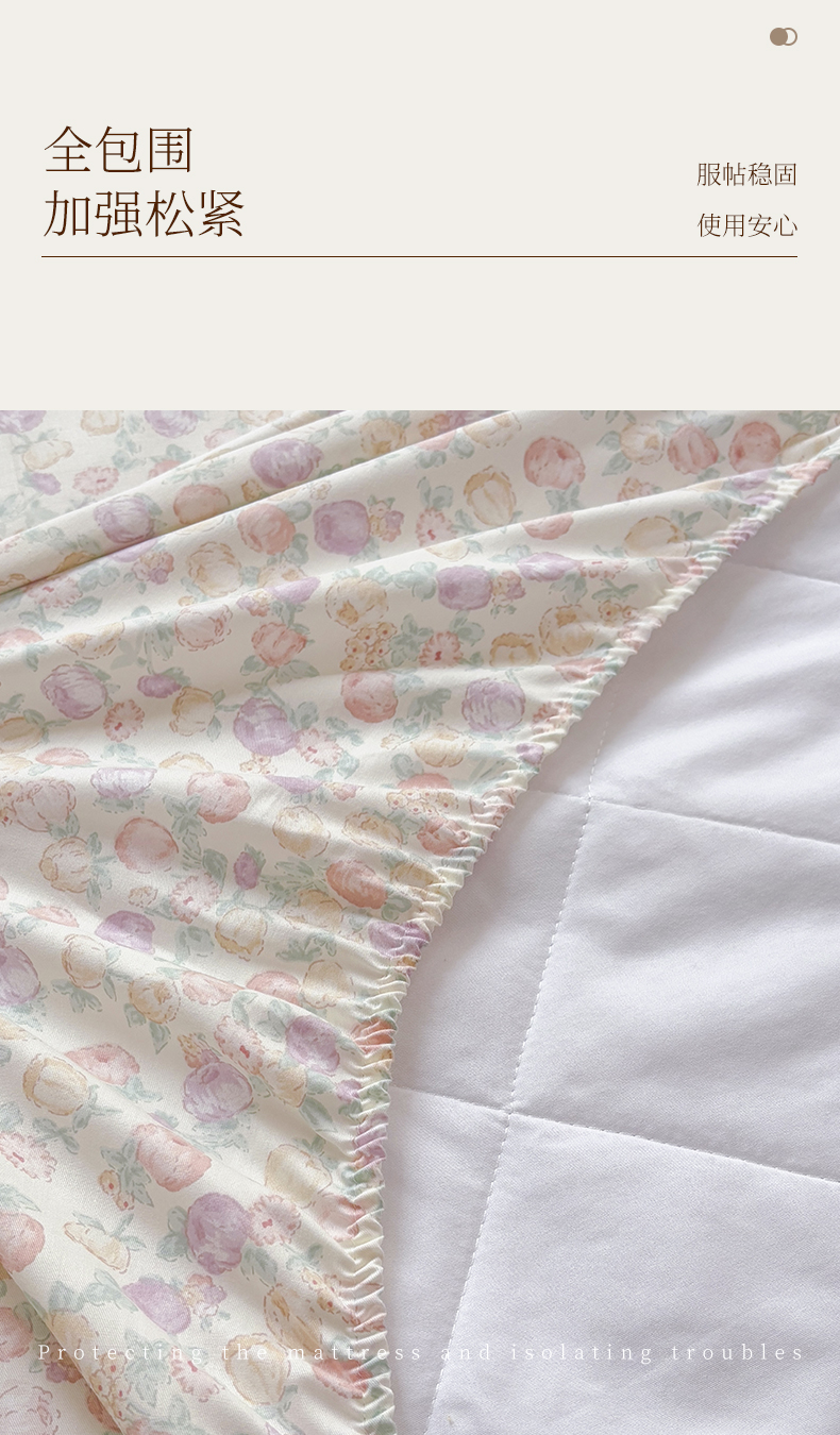 商品名称:元元被芯 2025新款40支13372全棉印花全棉隐藏式夹棉床笠 悠然