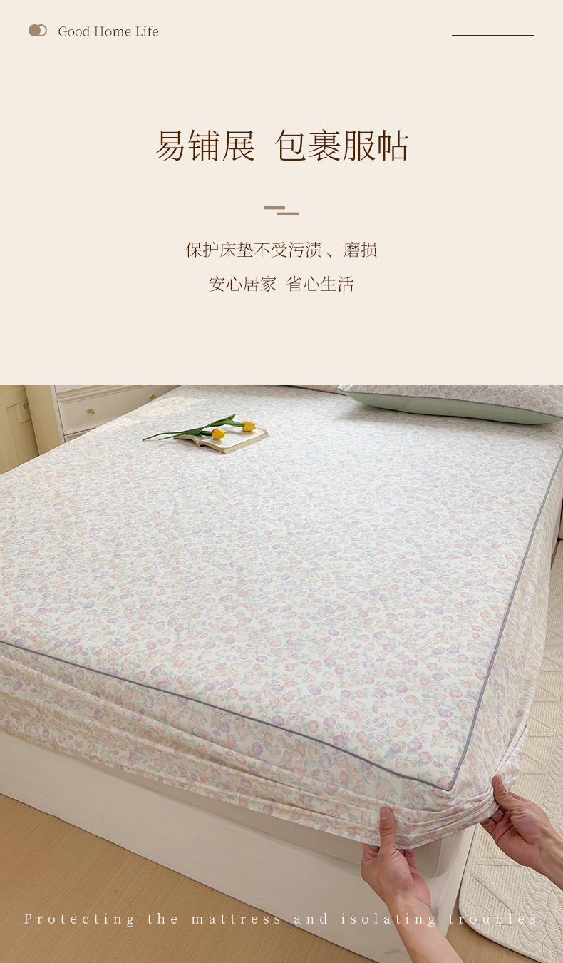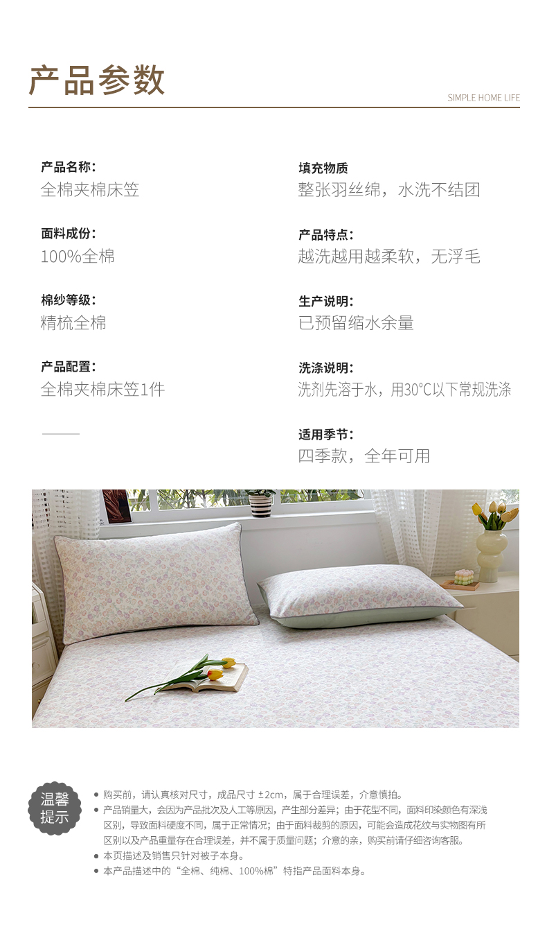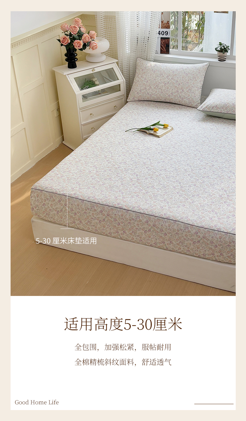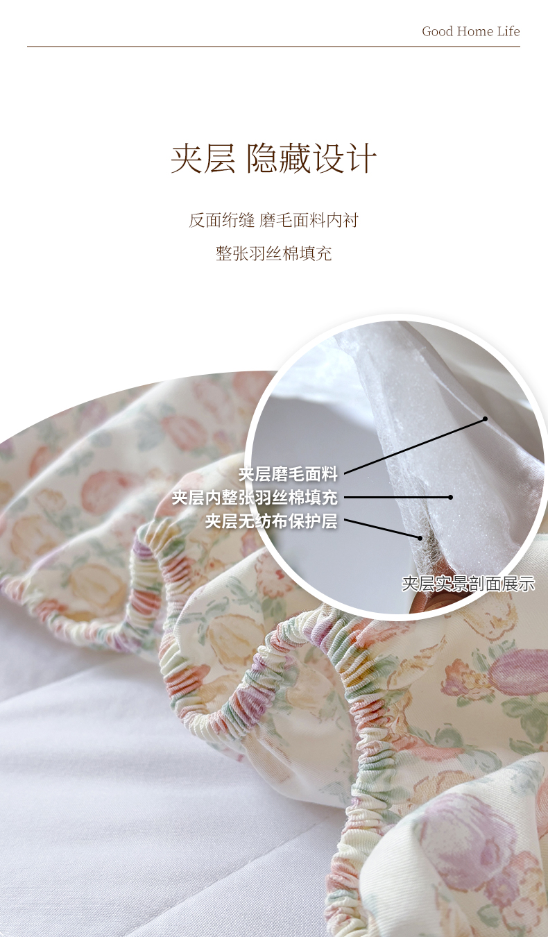 商品名称:元元被芯 2025新款40支13372全棉印花全棉隐藏式夹棉床笠 悠然
